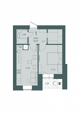 Общая площадь 38.07 м2