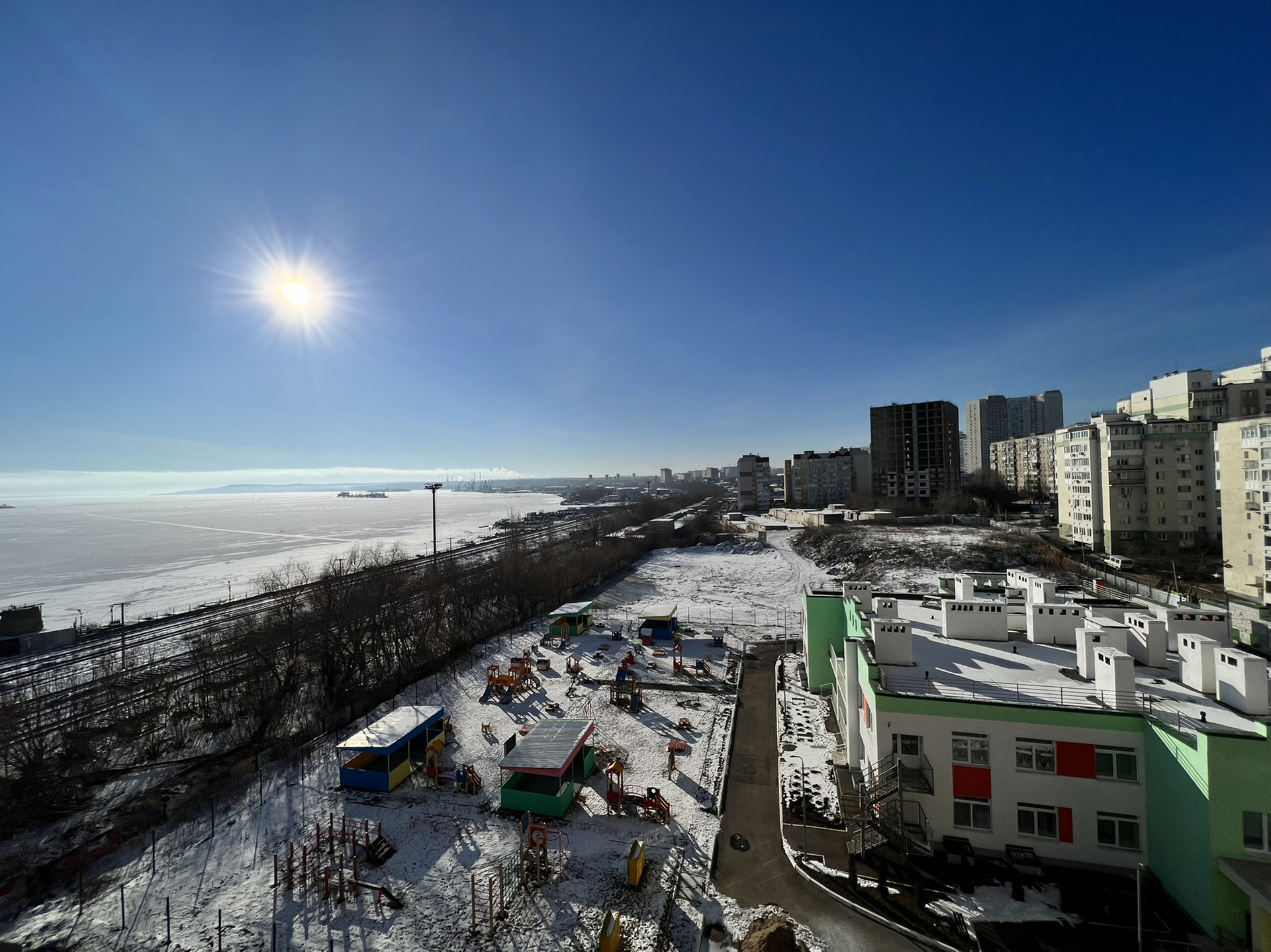 Придомовая территория благоустроена, в шаговой доступности находятся: городской парк, набережная, бассеин, ледовый дворец, лицей, школы, садики, магазины.