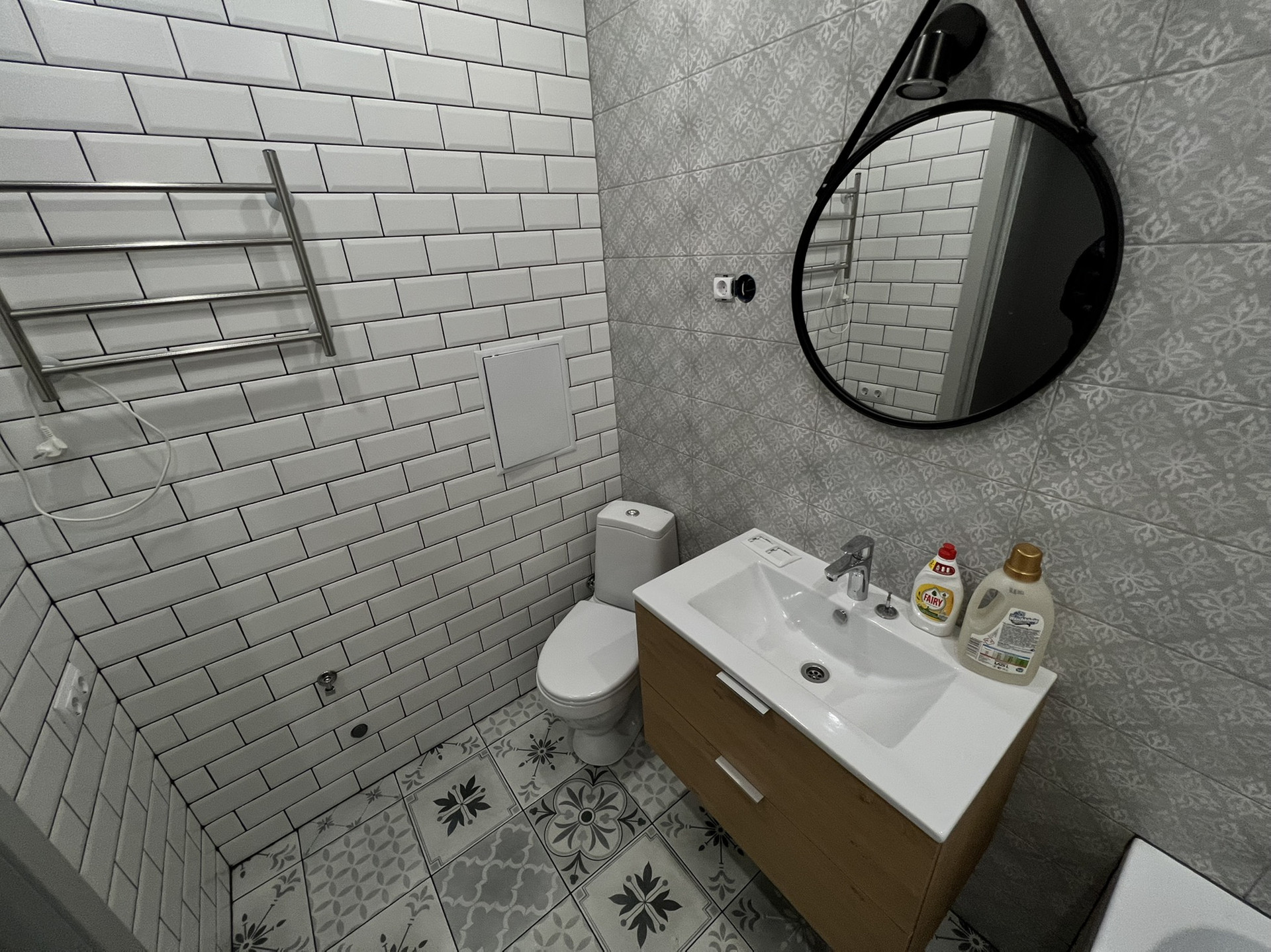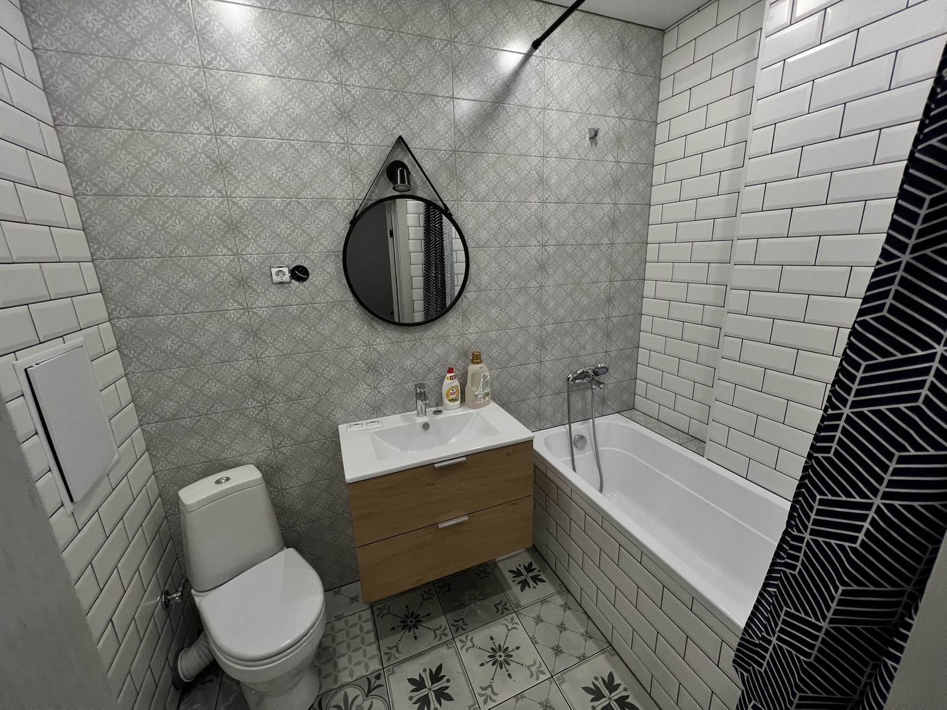 Все абсолютно новое, в квартире никто не приживал. Санузел просторный, совмещенный, установлена сантехника, лоджия остеклена.