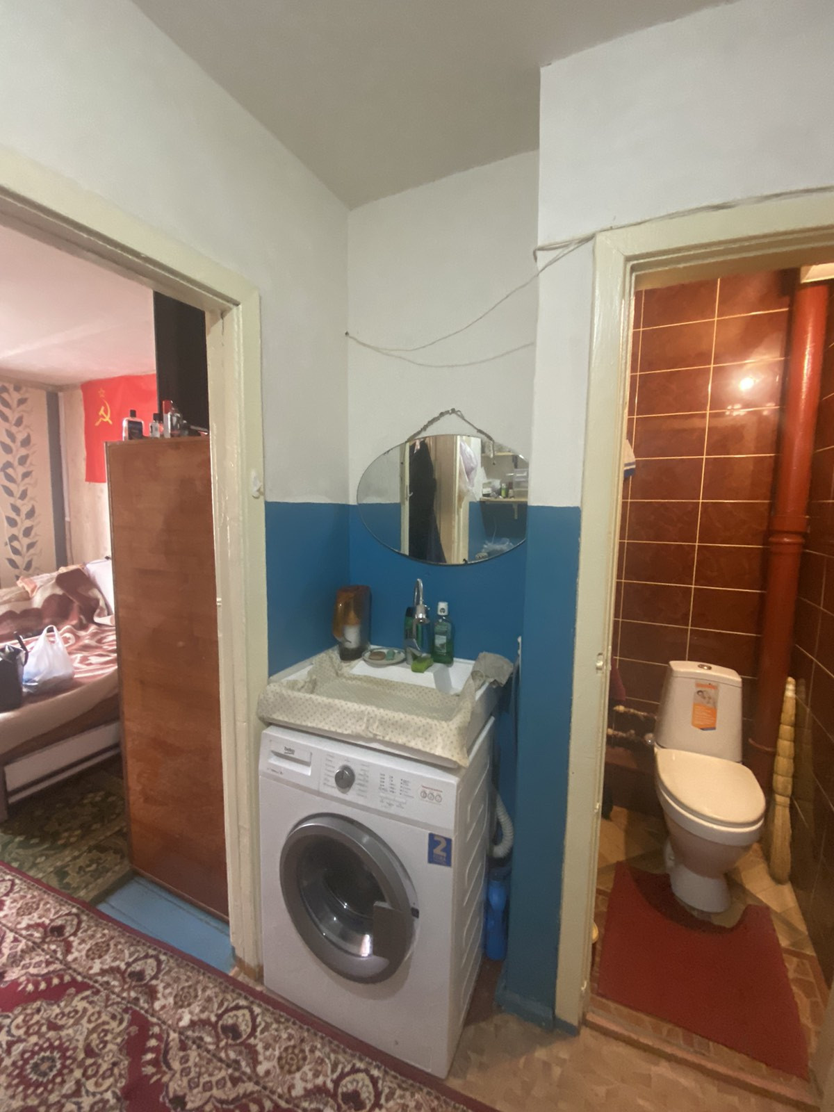 Квартира чистая, светлая, ванная в кафеле, установлено пластиковое окно,можно заехать и жить.