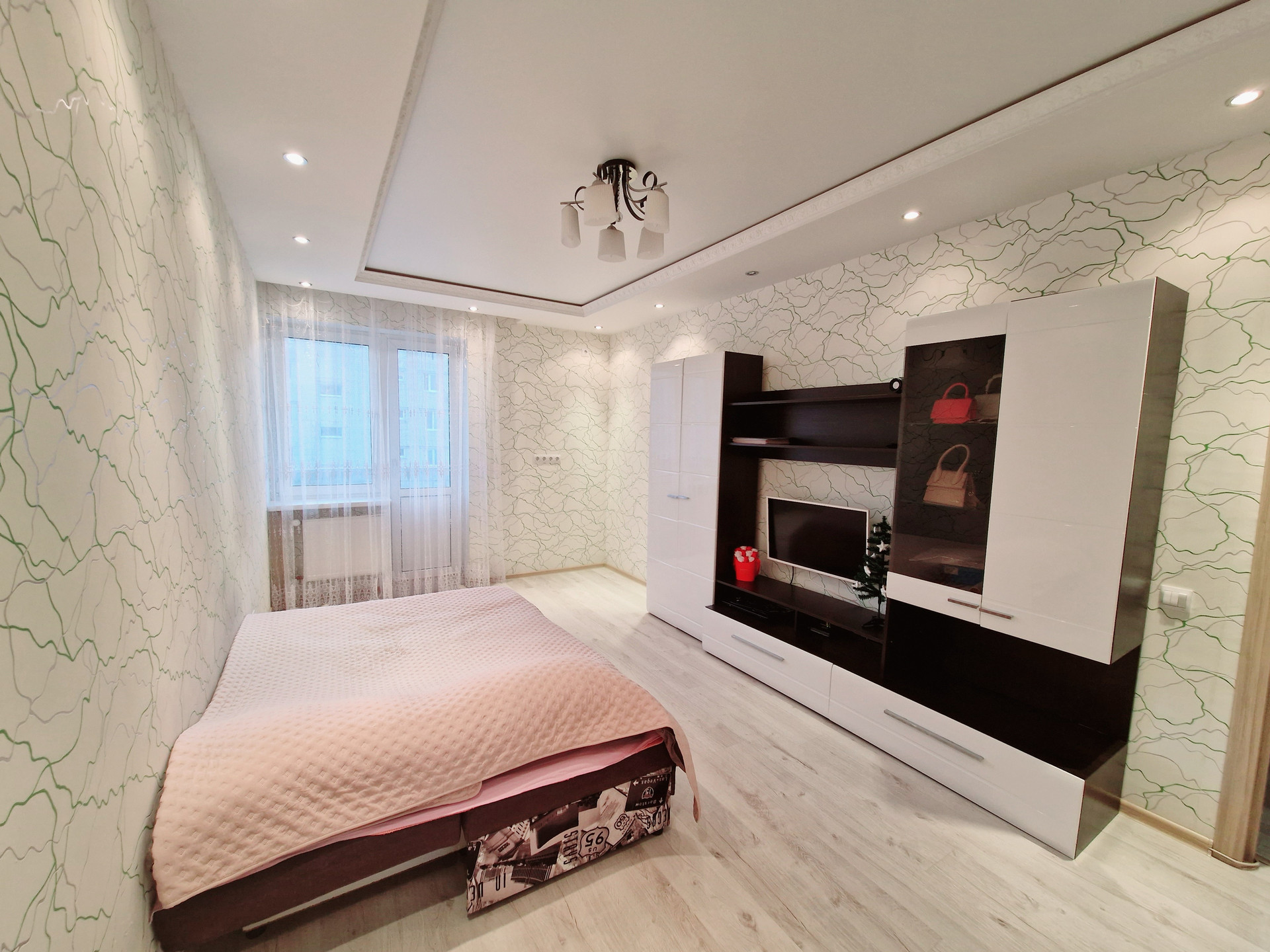 Качественный современный интерьер квартиры. Светлая, уютная комната с выходом на балкон. Большая кухня с кухонным гарнитуром. Совмещенный санузел.