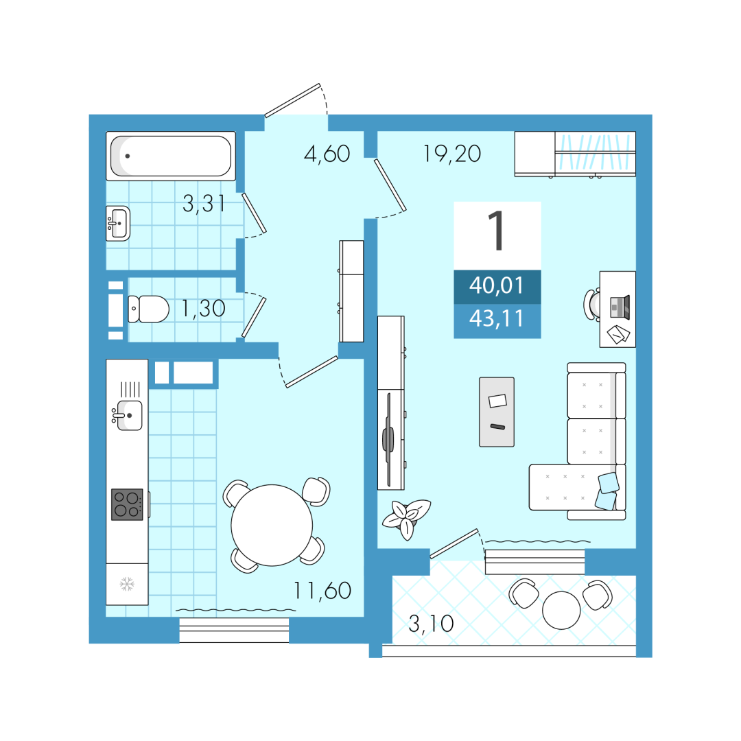 Предлагаем Вашему вниманию 1-к квартиру общей площадью 43.11 кв.м., планировка свободная (есть возможность распланировать квартиру на Ваш вкус), возможно сделать комнату 20 кв.м, сан узел как раздельный так и совмещенный, а также кухню около 13 кв.м., лоджия уже застеклена, все оконные проемы выполнены в больших (панорамных) размерах - квартира больше наполнена светом.