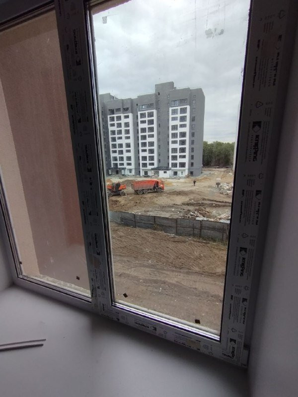 С кухни вид на одну детскую площадку Госжилстроя, с зала вид на площадку нового образца Кронверка которая будет готова уже весной.