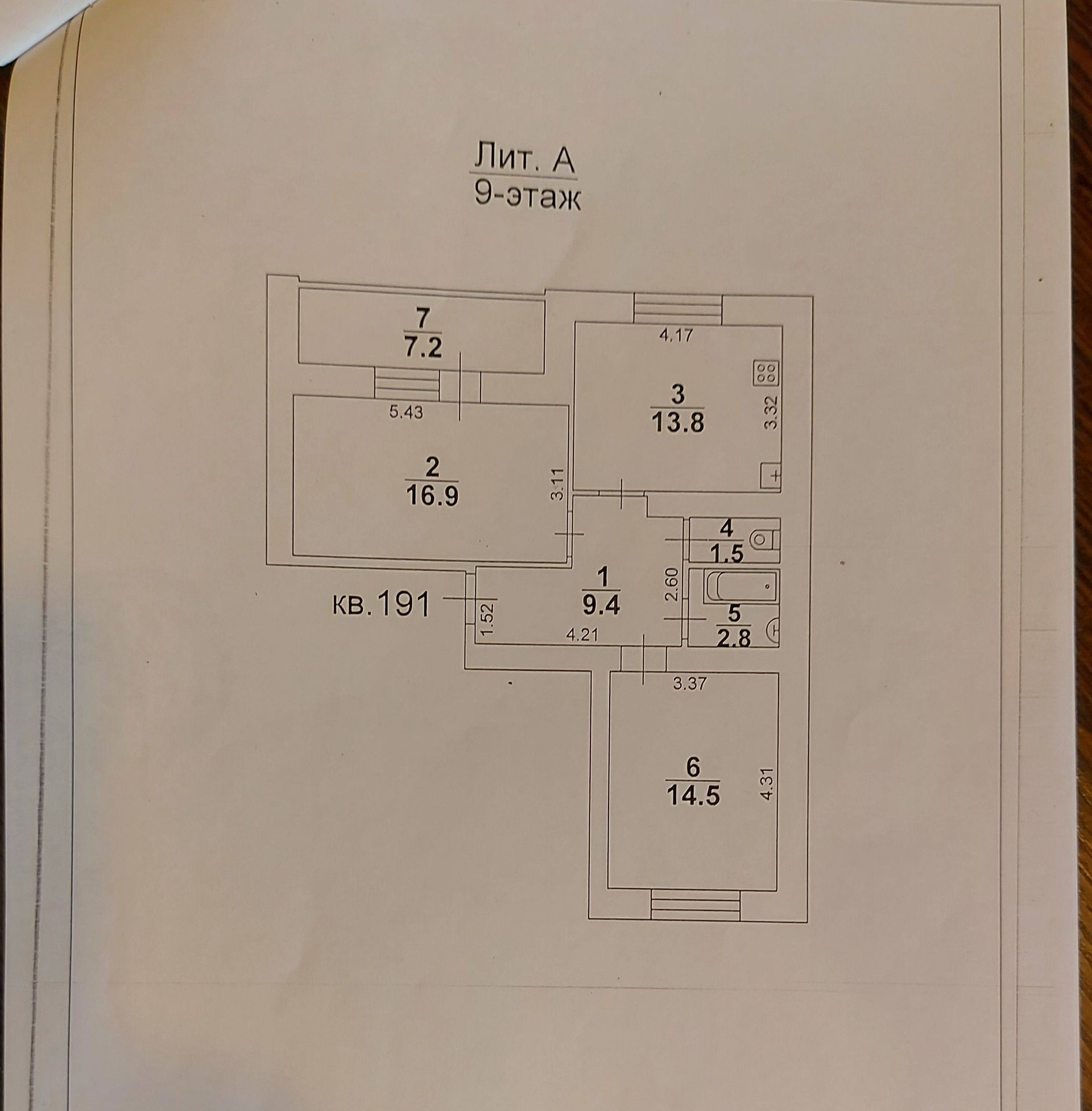 Общая площадь 58.9 м2