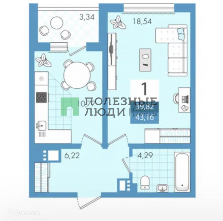Общая площадь 43.2 м2