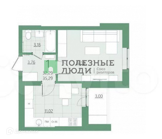 Общая площадь 35.29 м2