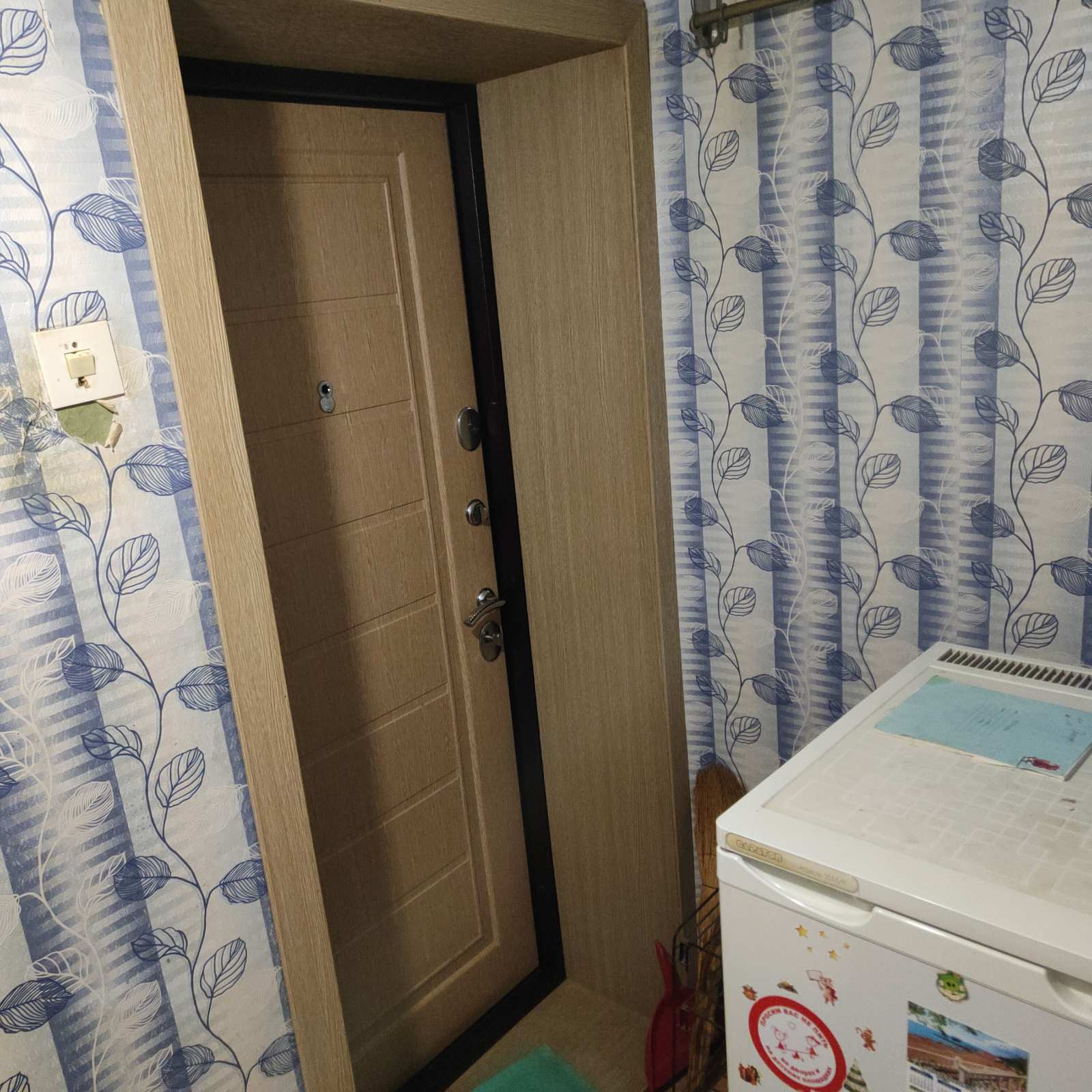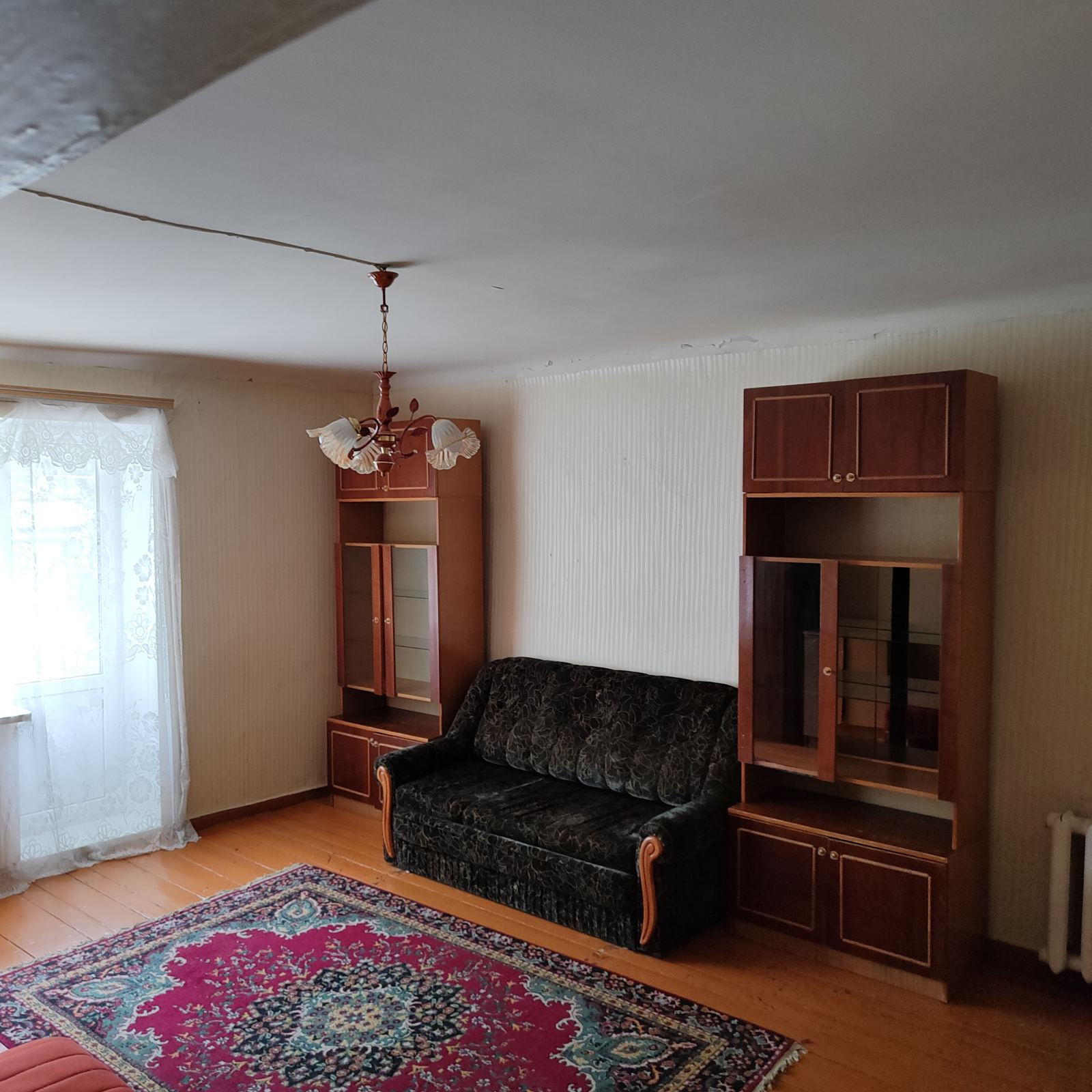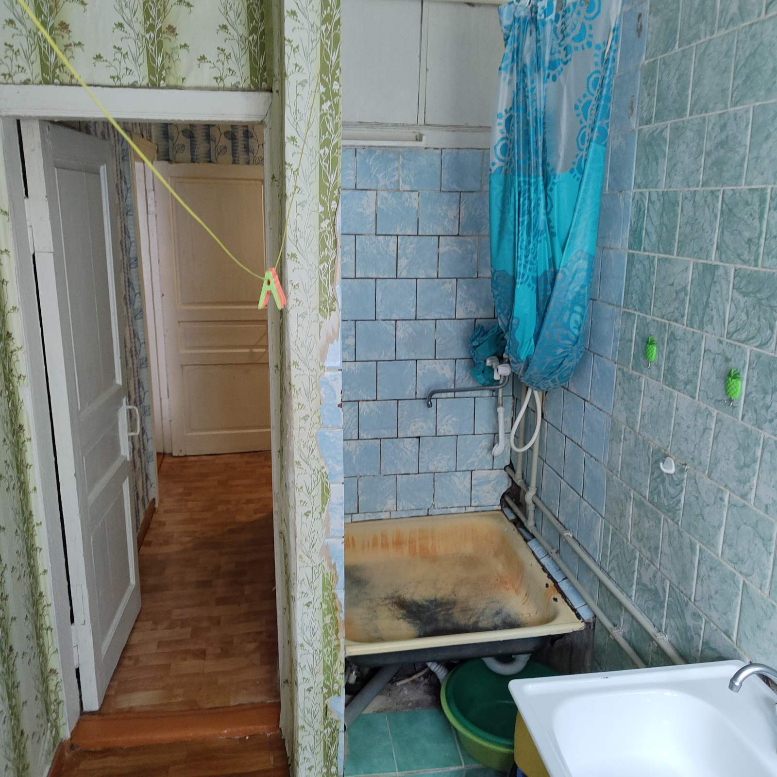 В квартире надо делать ремонт. Комната большая - 22 м , но маленькая кухня - 4 м. На кухне расположен душ. Ванны нет. Есть балкон. Квартира торцевая.