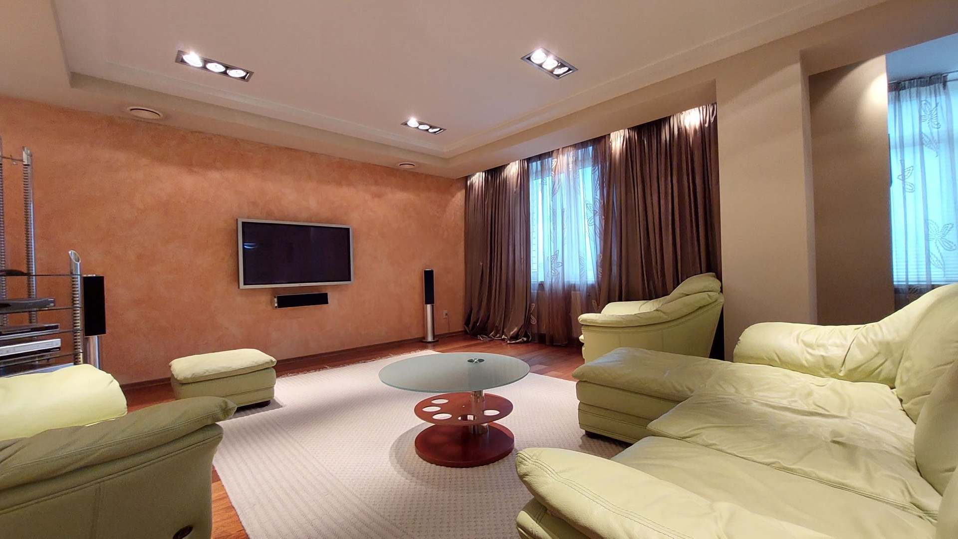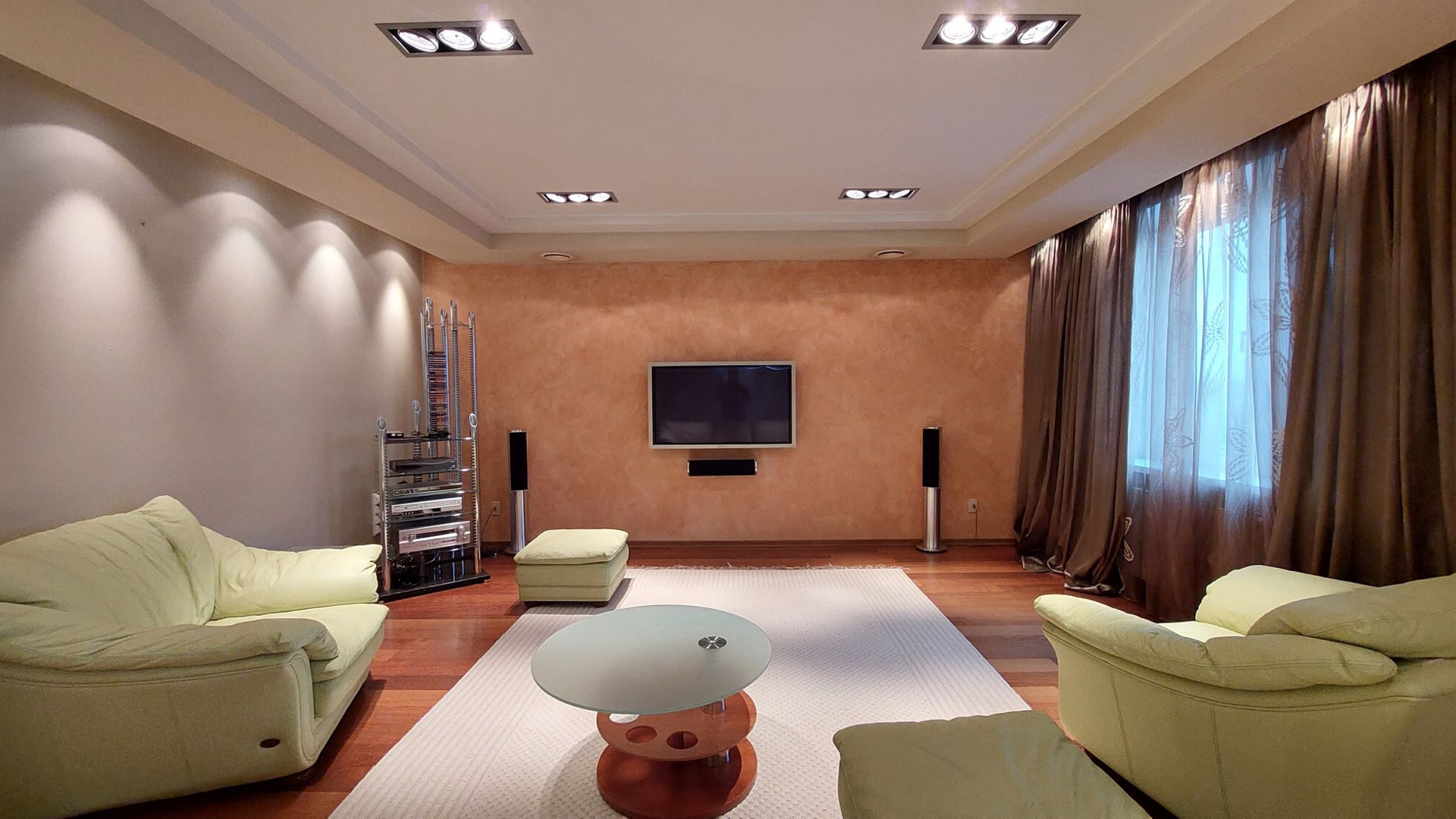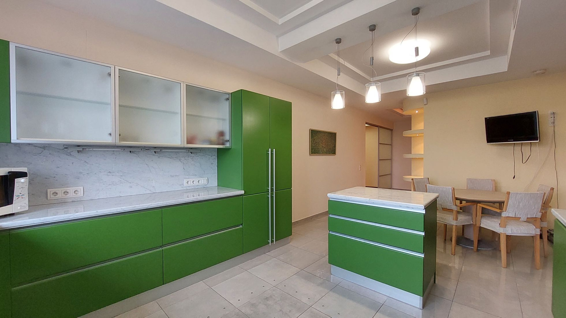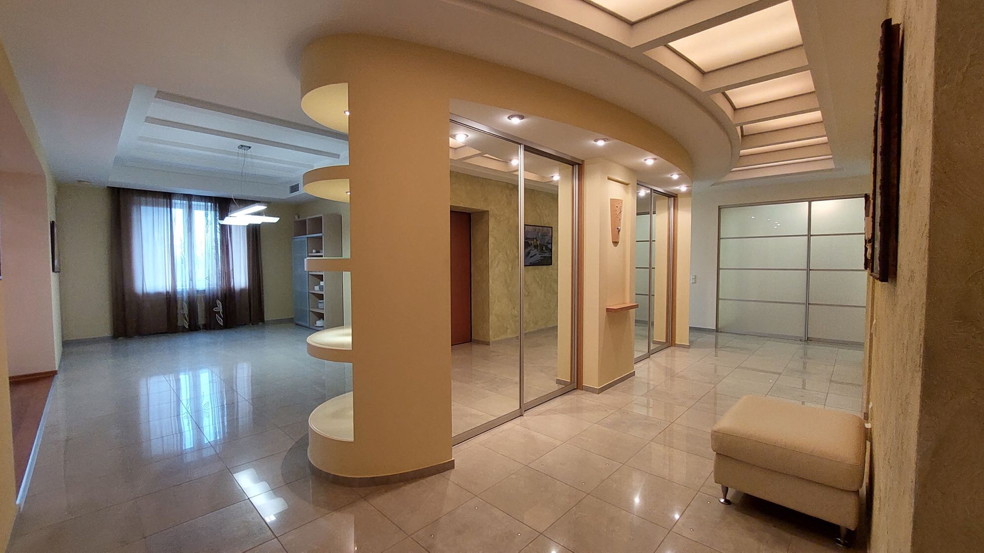 Просторная квартира площадью 305 кв.м выполнена по индивидуальному дизайнерскому проекту, состоящая из 5 комнат,  гостиной, столовая и кухня. 3 с/узла с  ванными и душевыми, прачечная комната, гардеробная комната.