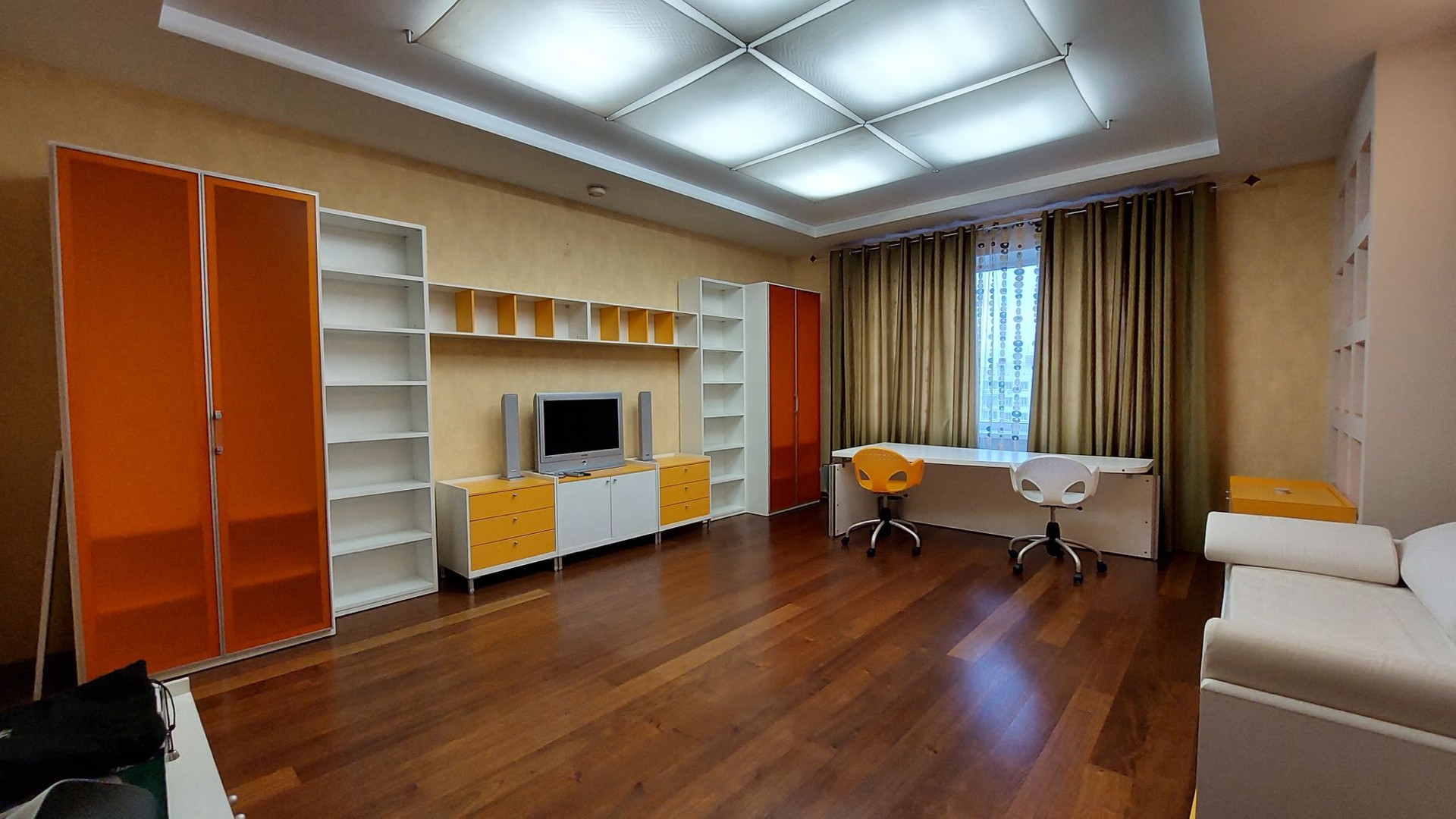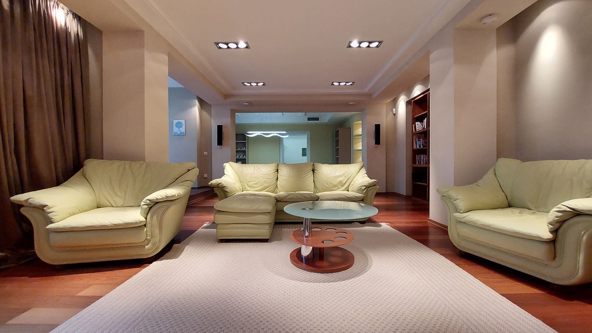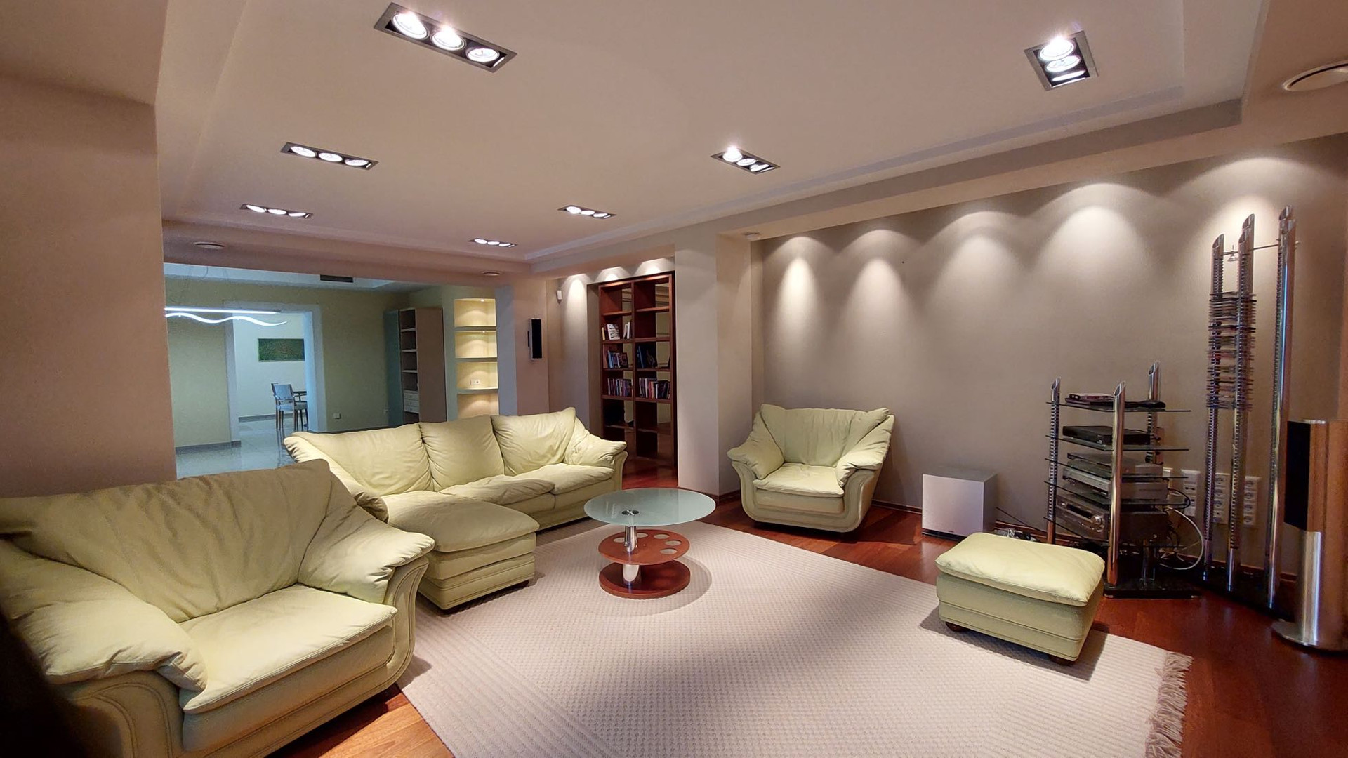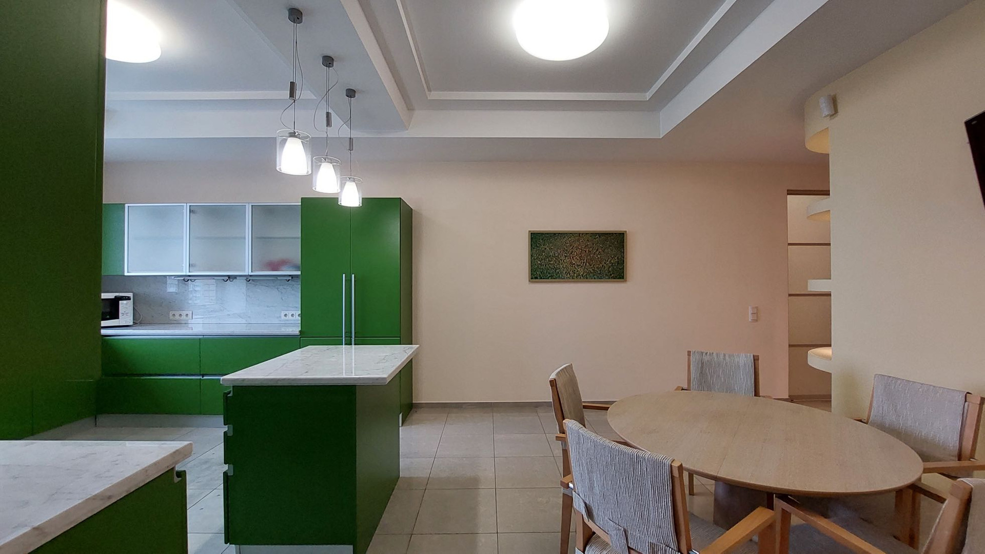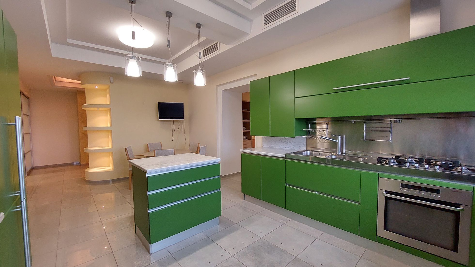 Просторная квартира площадью 305 кв.м выполнена по индивидуальному дизайнерскому проекту, состоящая из 5 комнат,  гостиной, столовая и кухня. 3 с/узла с  ванными и душевыми, прачечная комната, гардеробная комната.