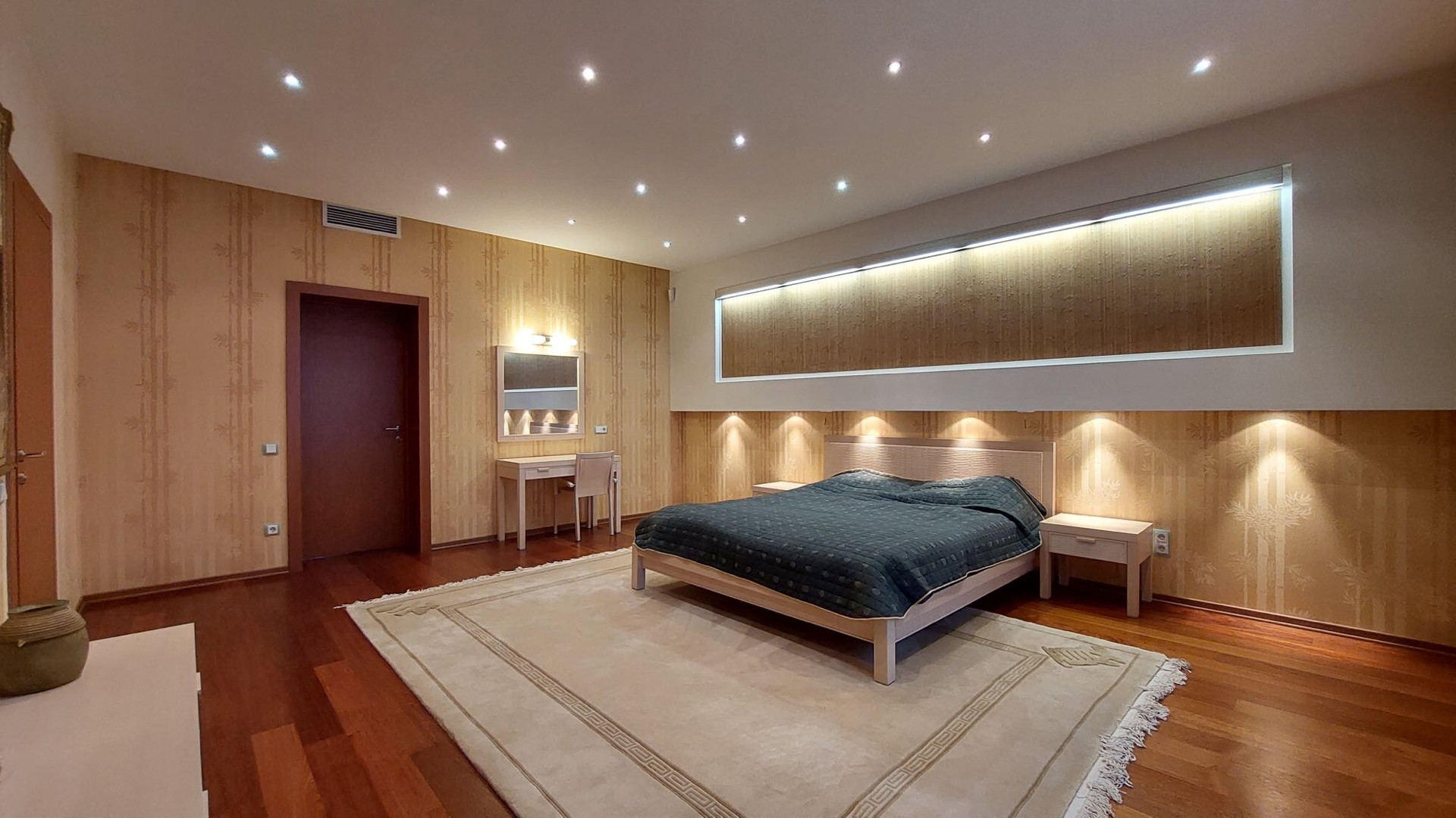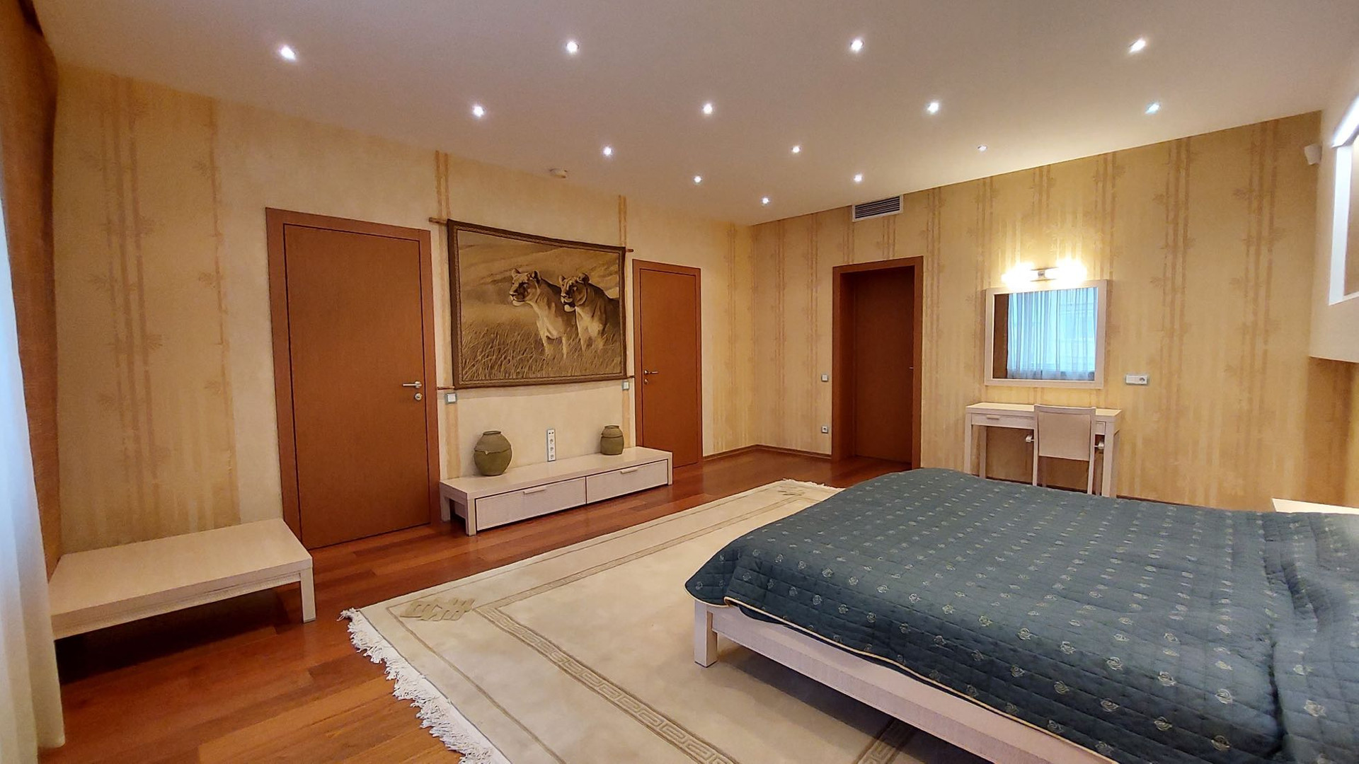 Большая спальня с комнатой для гардероба.