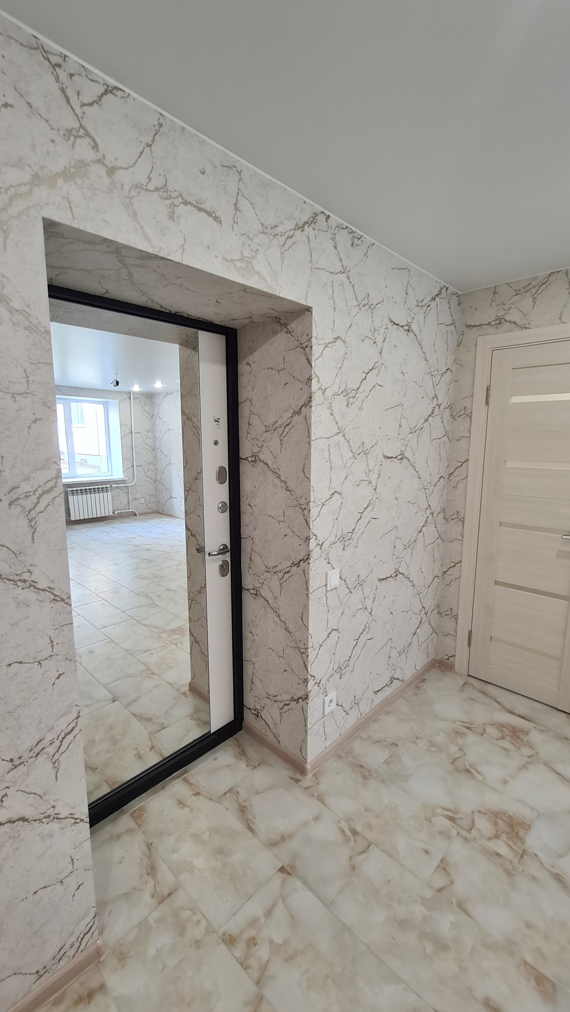 В коридоре установлен шкаф купе «Версаль» с зеркальными фасадами.