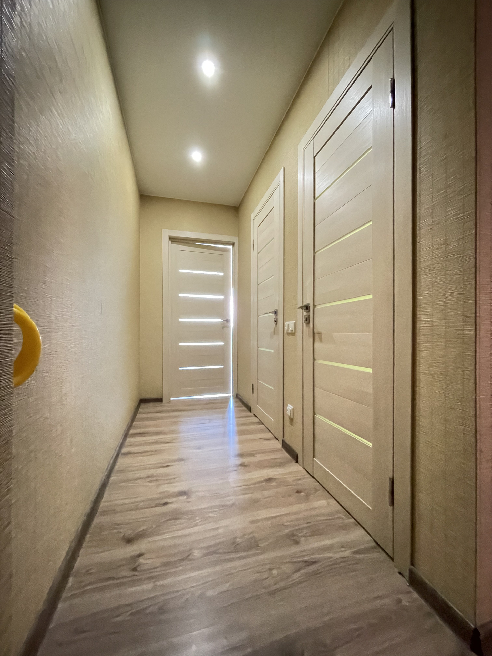 Сан узел в плитке, качественные межкомнатные и входная дверь.