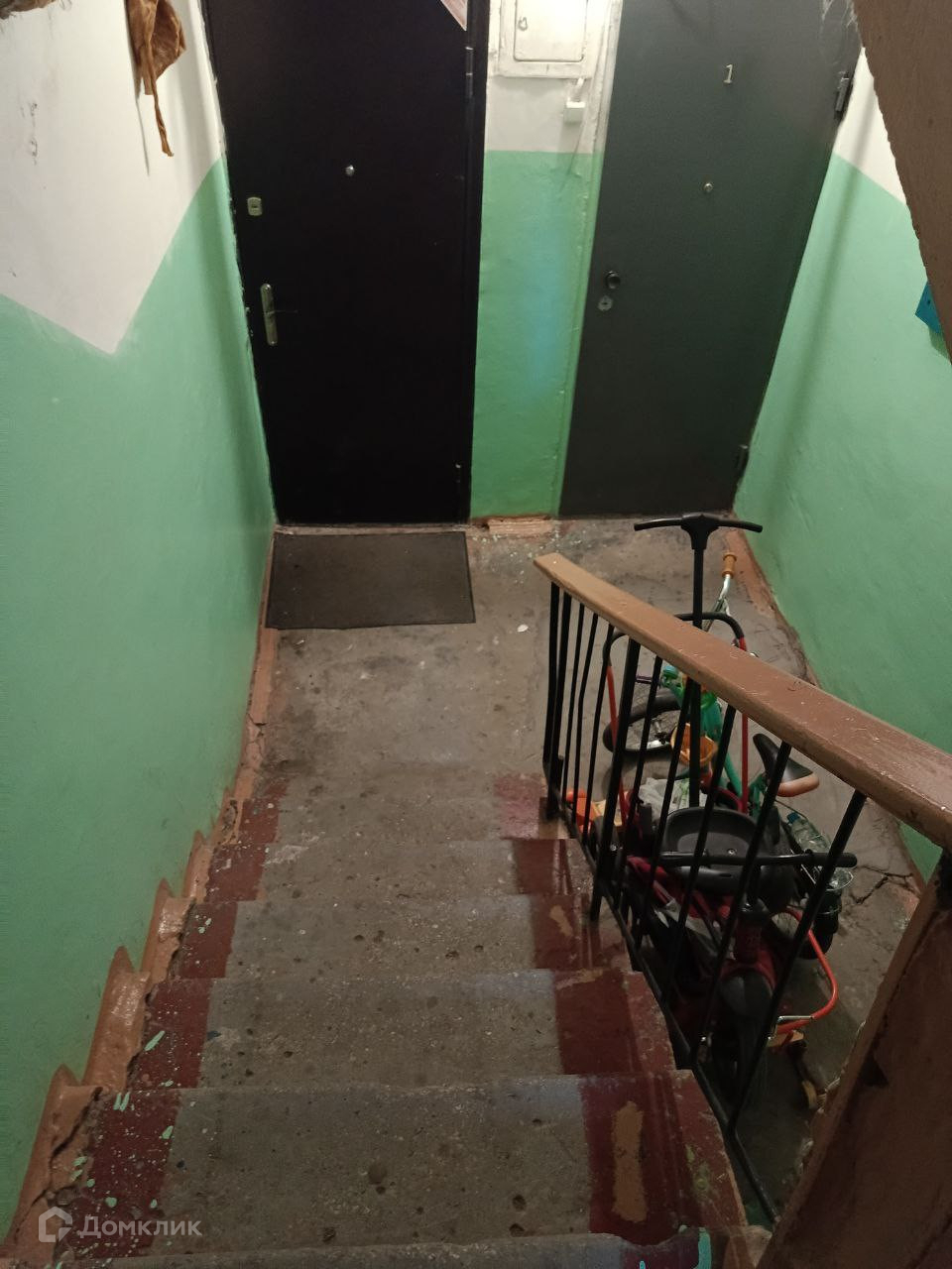 Цокольный этаж, но окна не на земле ( метр над землей ), выходят во двор, на детский сад.