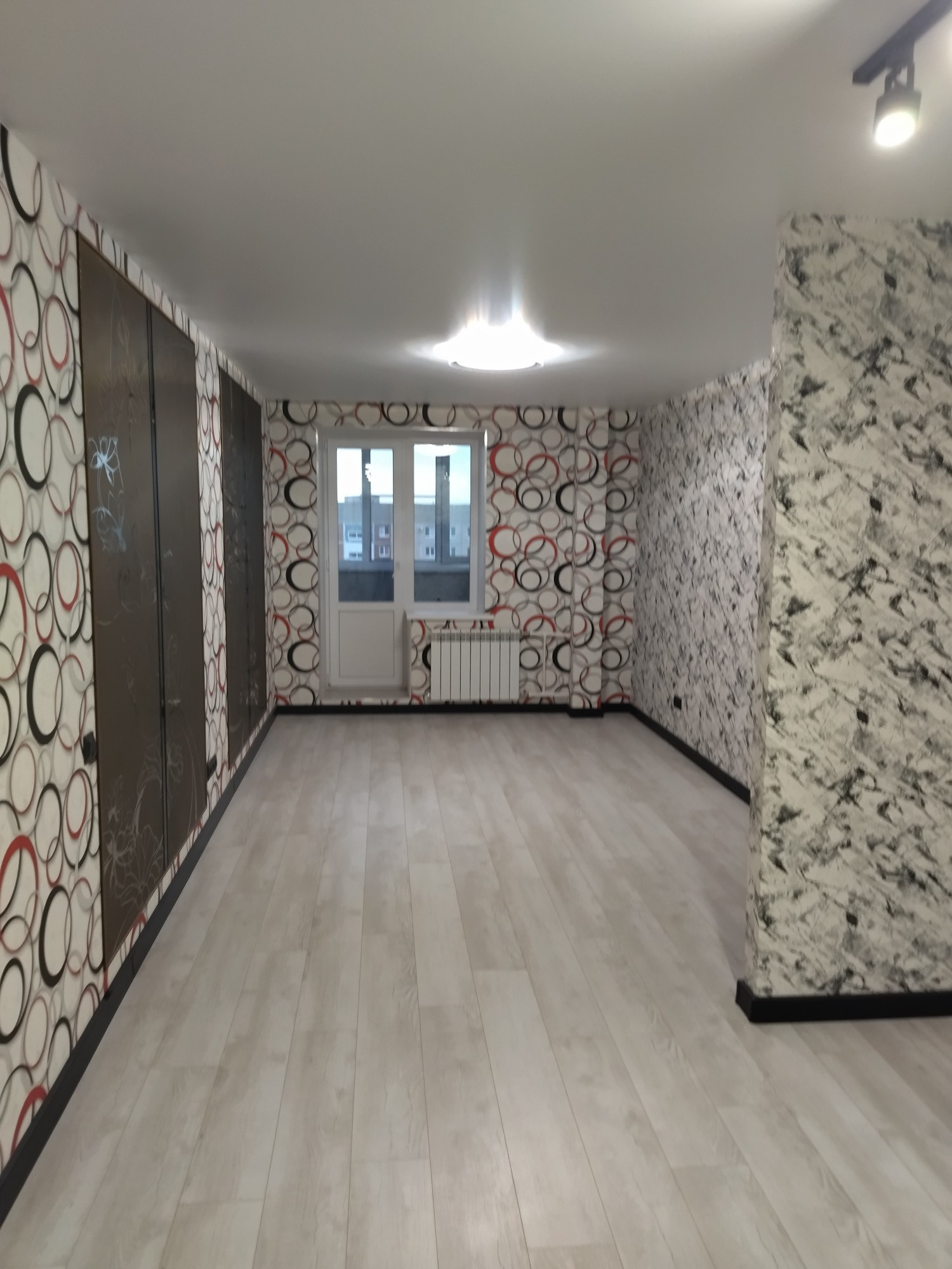 Уютная квартира-студия в центральной части города, вдали от шумных дорог. Качественный ремонт из дорогих материалов. Делали для себя, но планы поменялись. Лоджия застеклена, на полу лоджии сделан деревянный пол, уложен ковролин, получилось тепло, мягко и комфортно. В комнате на стене оригинальный дизайн из стекла, такого нигде не увидишь. На кухне фартук из зеркальной плитки разных тонов. Освещение на кухне - поворотные светильники на штанге. Можно настроить по своему желанию. В жилой комнате и кухне водостойкий ламинат. Во входной группе керамогранит. Санузел совмещённый, все в кафеле. все коммуникации скрыты в короба, установлена навесная раковина над стиральной машиной, что позволило сэкономить площадь. Экран под ванной также из кафеля, легко открыть и закрыть. Можно убрать под ванну много чего. Душевая система с тропическим душем. При входе есть ниша, можно сделать гардеробную. Во все квартире натяжные потолки. Вдоль окна сделана ниша под багет и дополнительное освещение.