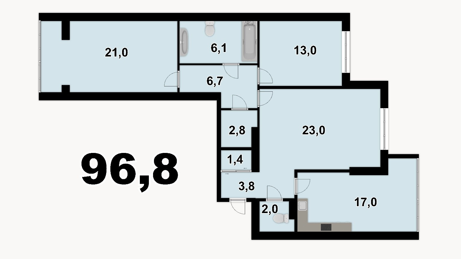 Общая площадь 96 м2