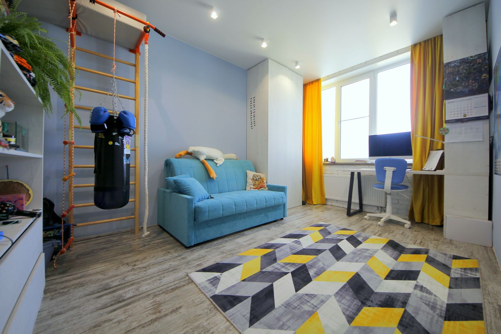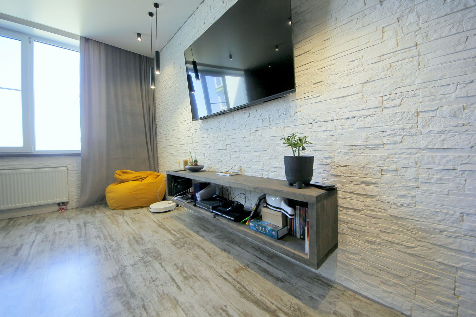В квартире сделан качественный, современный ремонт, сан узел в кафеле, теплый пол: зона кухни, детская, сан узел и коридор.