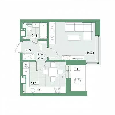Общая площадь 32.4 м2