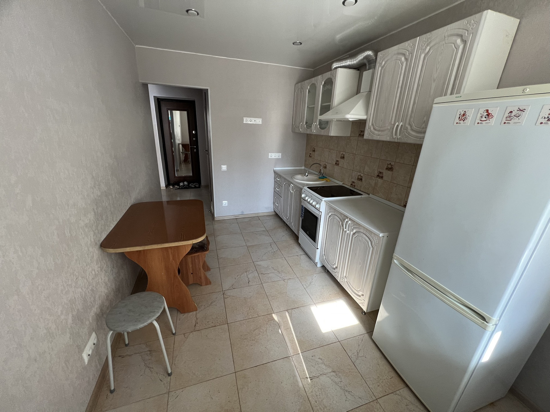 Продается 1 комнатная квартира район Улеши. В квартире выполнен качественный ремонт, в кухне и прихожей кафель, в комнате ламинат, натяжные потолки с точечными светильниками. В прихожей гардеробная.Остается в квартире вся мебель(кухня, холодильник, диван). Во дворе детская площадка.