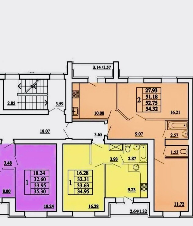 Общая площадь 54.32 м2