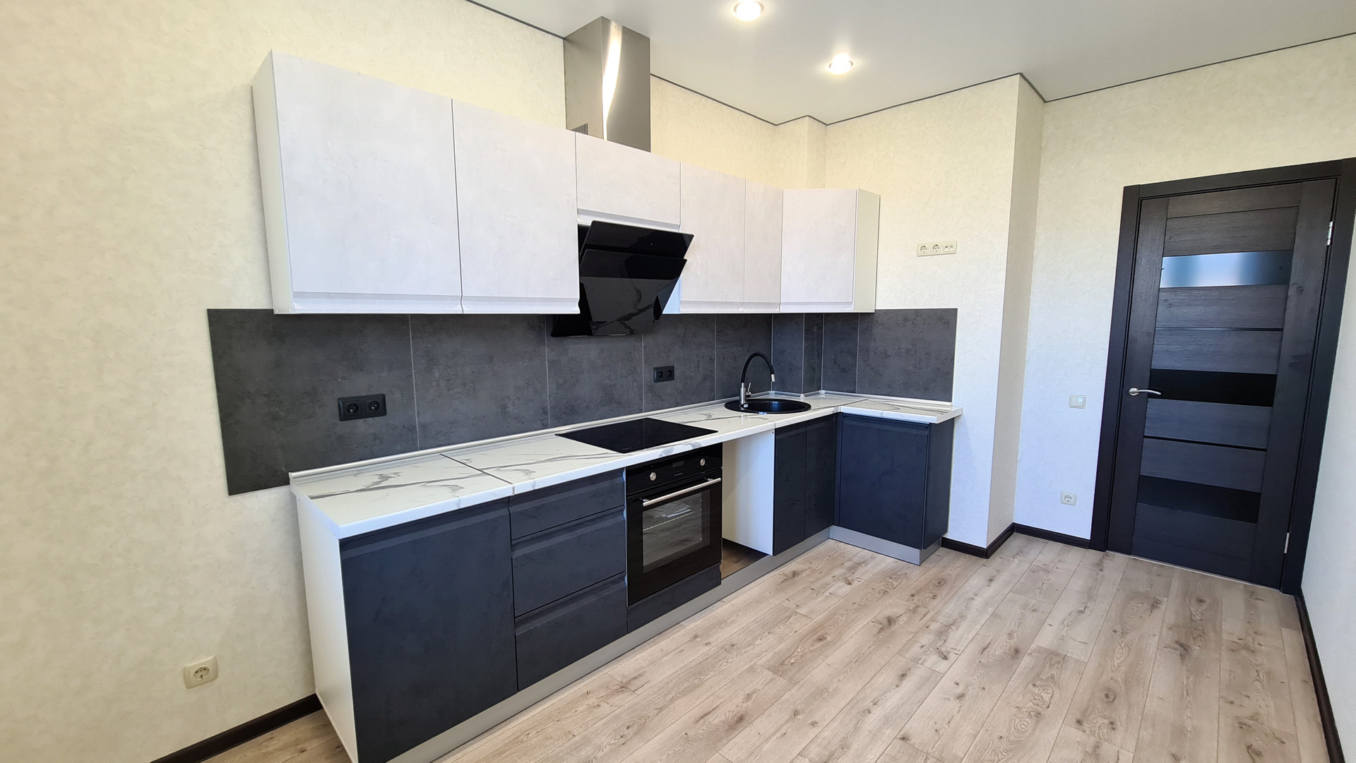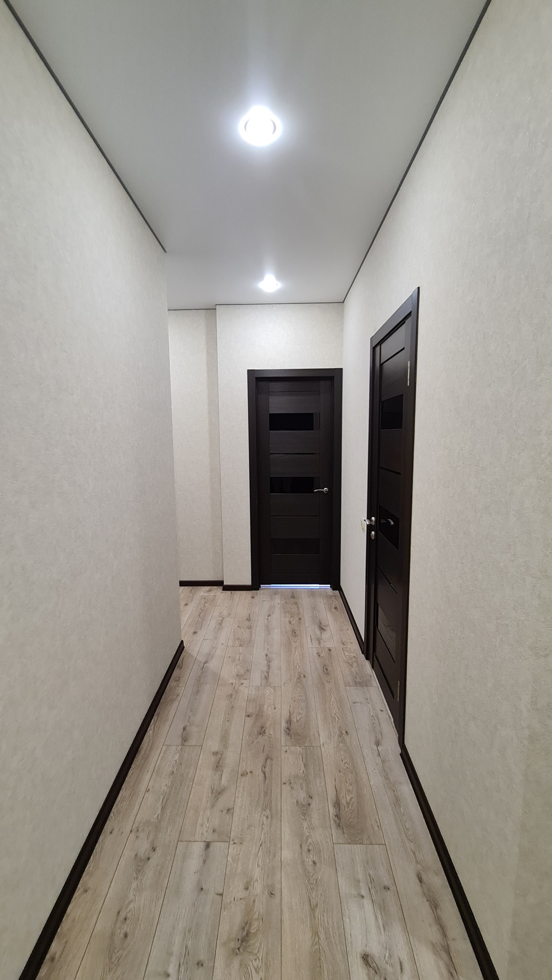 Стены идеально выровнены, оштукатурены, отшпаклеваны и оклеены хорошими обоями. По всей квартире проведён интернет и тв. При входе большая гардеробная. Потолки натяжные, на полу ламинат 33 класса прочности, межкомнатные двери в классическом стиле цвета Венге.
