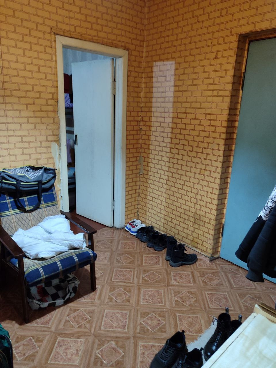 Большой тамбур на 3 квартиры. Чистый, отремонтированный подъезд.