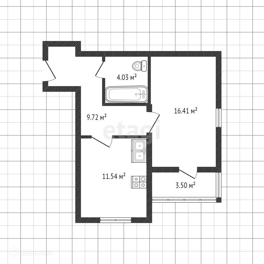 Общая площадь 41.7 м2