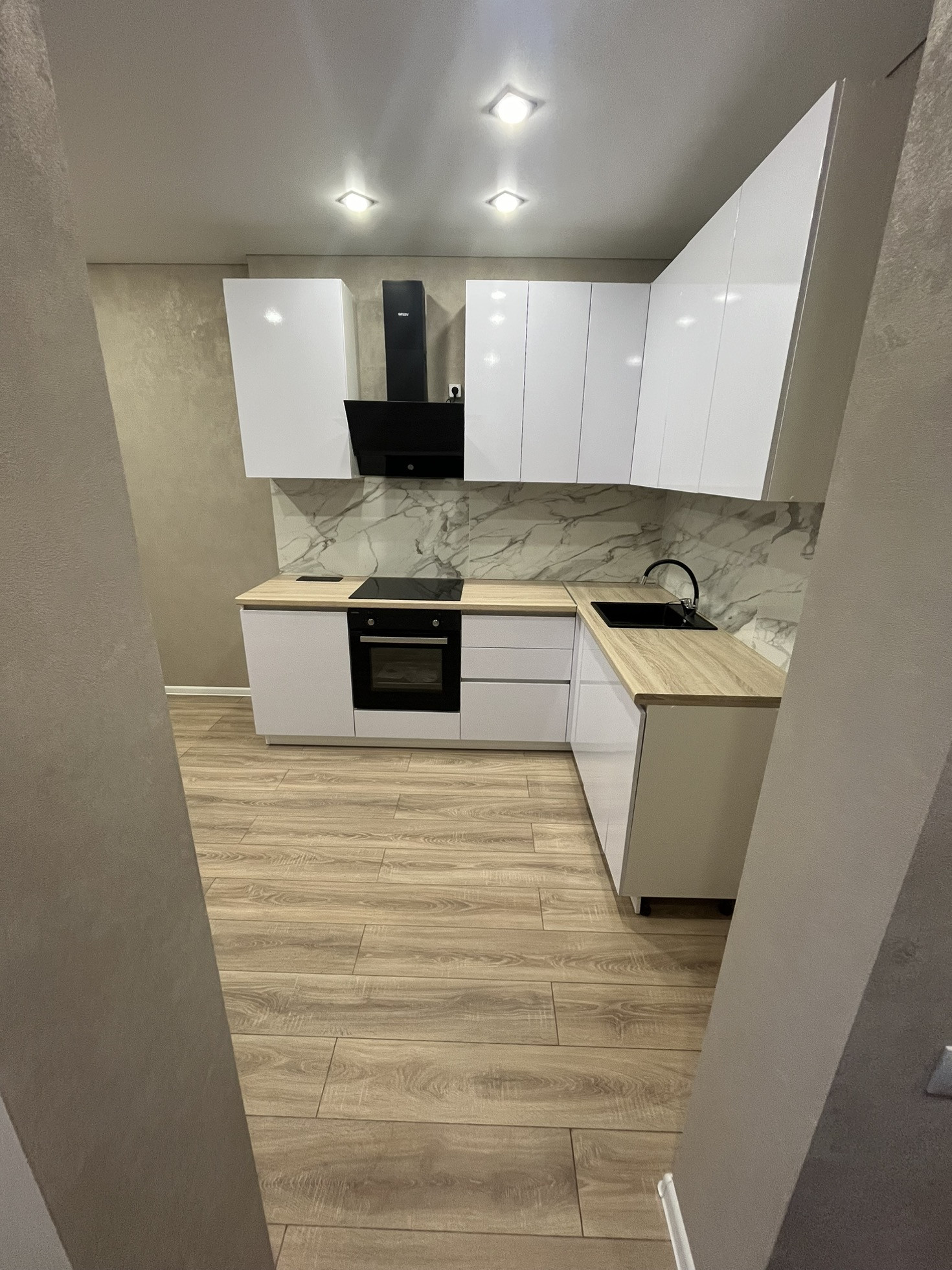 При продаже остаётся встроенная кухня, духовой шкаф, варочная индукционная панель, вытяжка.