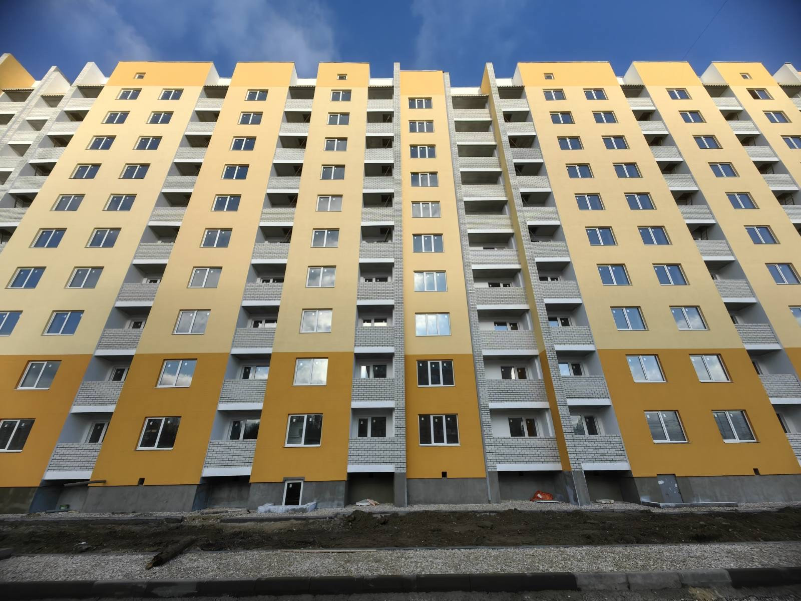 Жилой комплекс состоит из двух кирпичных 10 ти этажных домов с наружным фасадным утеплением.