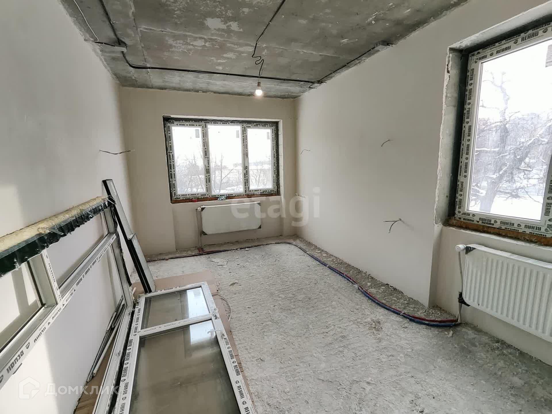 В квартире установлены радиаторы отопления и начат ремонт, продавец готов полностью сделать ремонт по запросу и проекту покупателя. Запланирована большая кухня-гостиная, 2 спальни и 2 санузла.