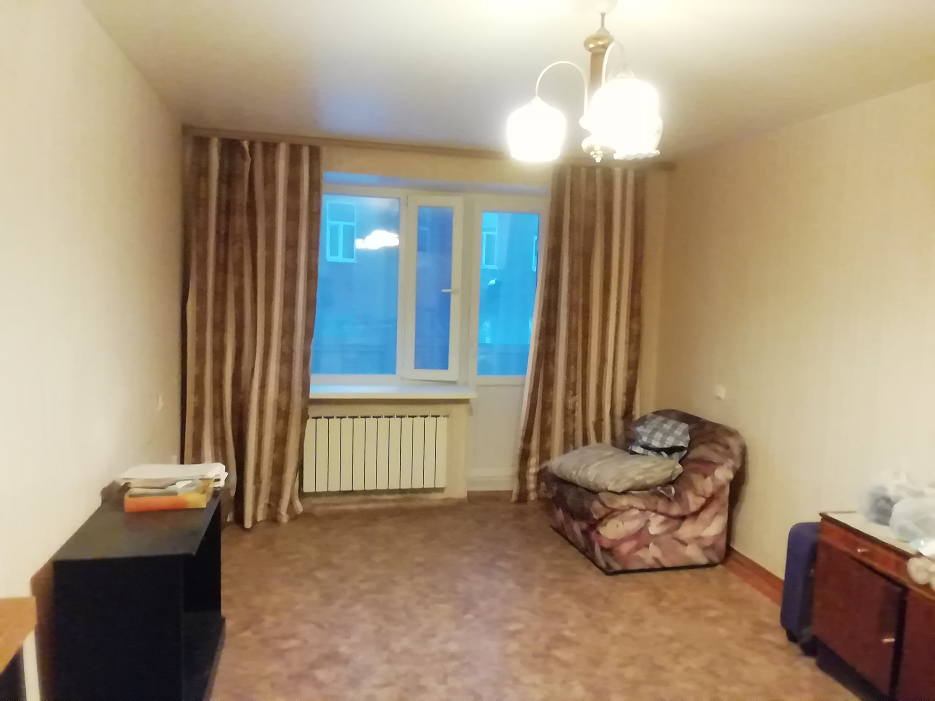 В квартире старенький ремонт. Но, поменены окна. Стоят счетчики на воду. Чистый подъезд. Аккуратный двор.