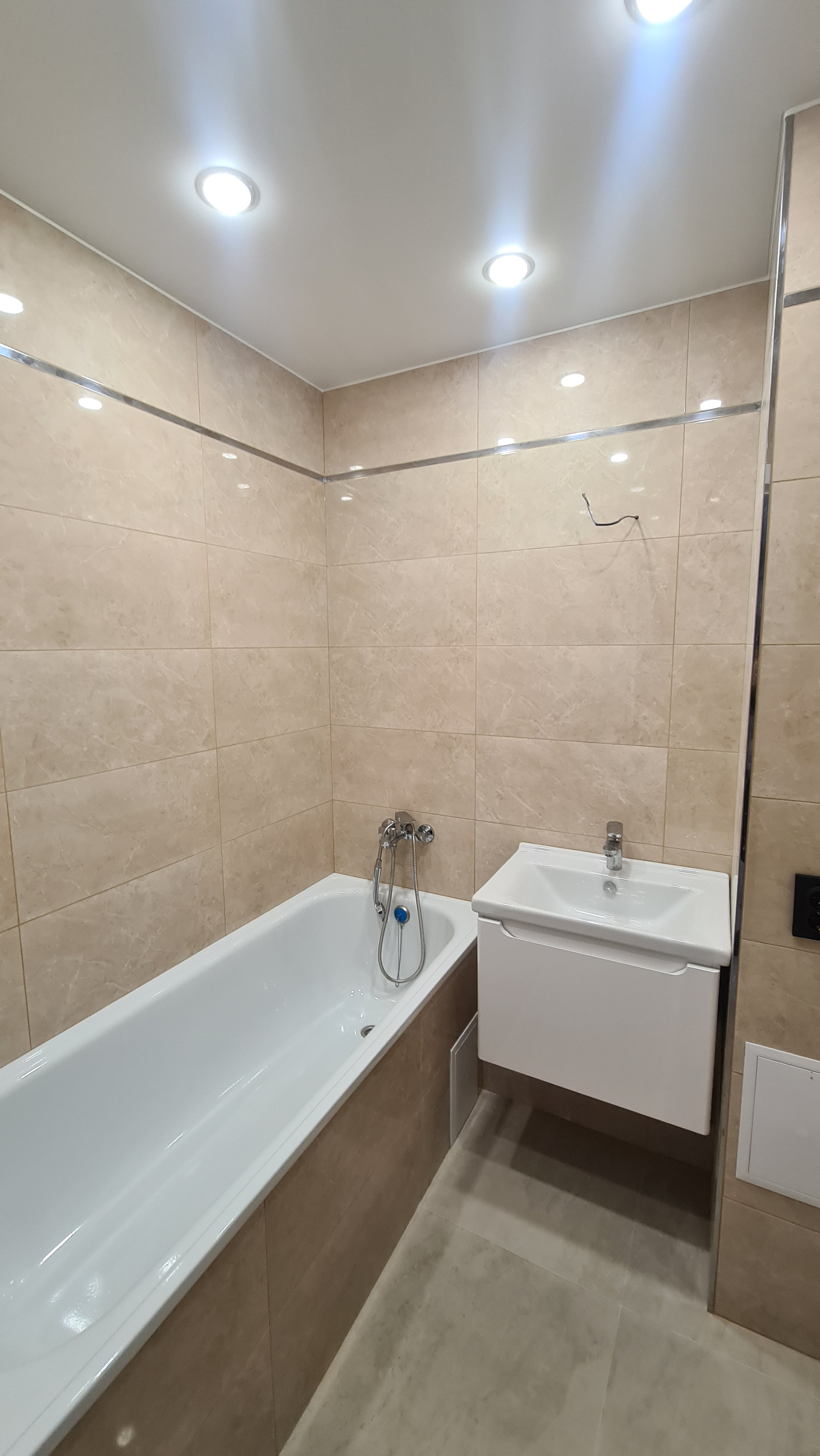 Во всех комнатах белый матовый натяжной потолок с точечным освещением и люстрами с пультами управления.