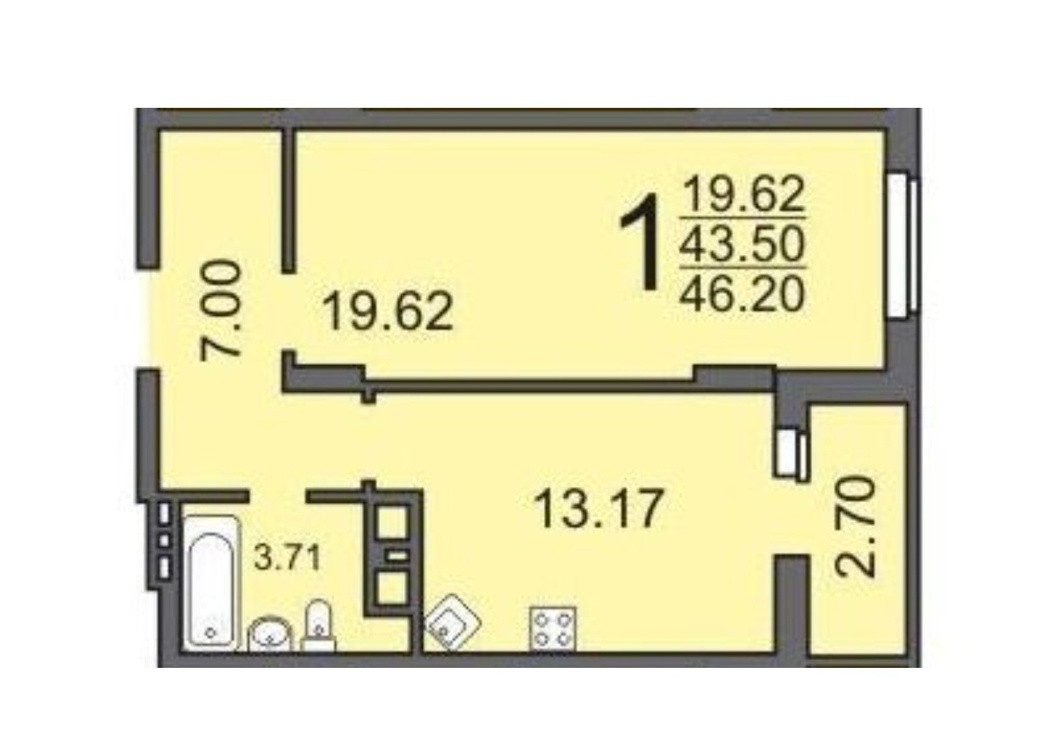 Общая площадь 46 м2