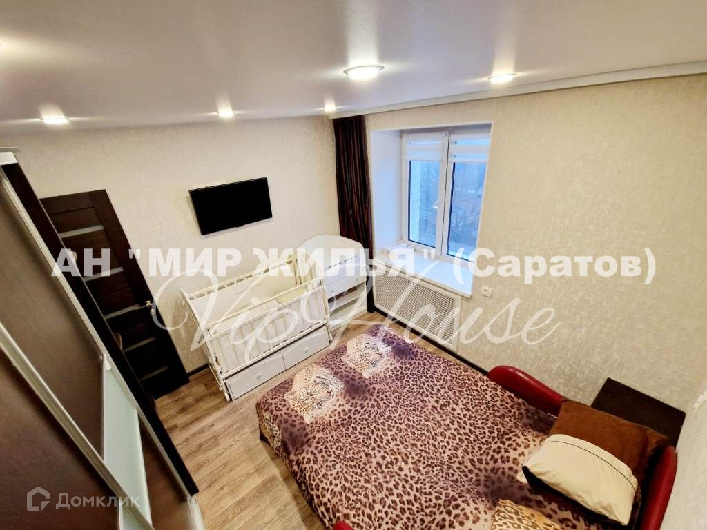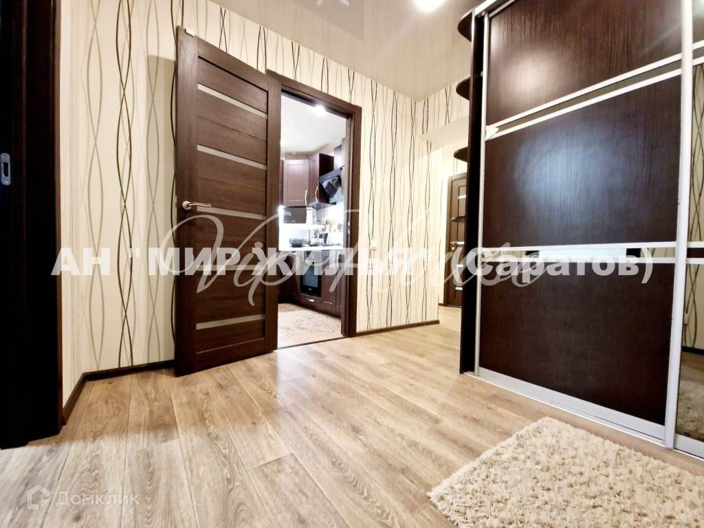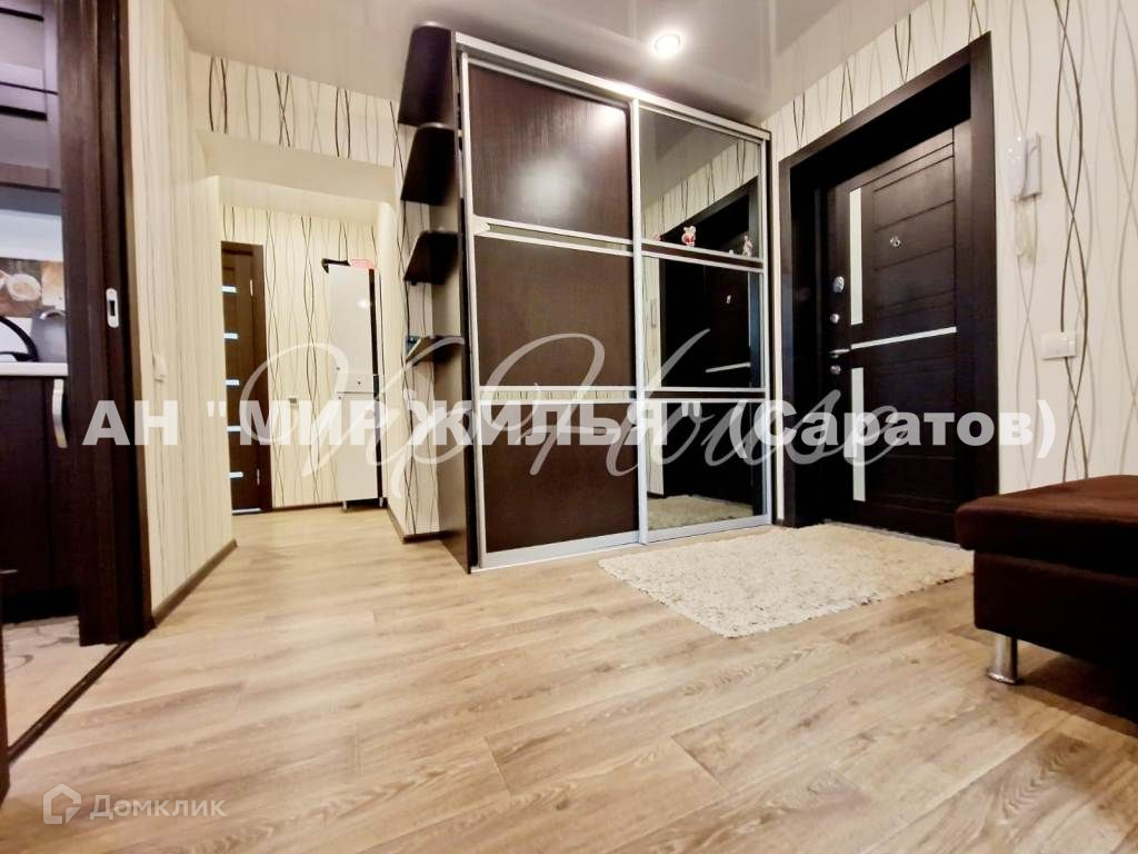 Срочная продажа в связи с переездом Предлагается к продаже 2-х комнатная квартира полностью готовая для проживания. Удачно спланировано пространство квартиры: просторная кухня с выходом на лоджию, детская комната, основная спальня с выходом на лоджию, ванная комната и просторный холл. В квартире установленна система контроля протечки воды Neptun, предназначена для своевременного обнаружения и локализации протечек воды в системе водоснабжения, установлена на оба стояка. В квартире остаётся практически вся встроенная техника и мебель, а именно: Стильная кухня. В двойной раковине на кухне имеется диспоузер (устройство для измельчения и утилизации остатков пищи). В спальнях остаётся большой раскладывающийся велюровый диван, два больших вместительных шкафа-купе, двуспальная кровать. На лоджии установлена сплит- система Mideа с удаленным управлением через мобильный телефон из любой точки мира. Ванная комната отделана итальянской плиткой в классической цветовой гамме, установлена качественная сантехника. Душевая система Ceruttiс с тропическим душем. Зеркало c подсветкой, полотенцесушитель. Встраиваемый смеситель с гигиеническим душем. Натяжные потолки во всей квартире, напольное покрытие - ламинат в комнатах, плитка в ванной, кухне и коридоре + тёплые полы во всей квартире. Высококачественные межкомнатные двери. Предусмотрена удобная автостоянка для жильцов во дворе дома. Этот район славится своей хорошо развитой инфраструктурой, и территория рядом с домом  лучшее тому подтверждение. Вблизи расположены школы 77, 82, детский сад "Белочка", детский сад 54, СГТУ им. Ю.А. Гагарина. В шаговой доступности находится природный парк "Октябрьское ущелье", сетевые магазины "Магнит", "Пятёрочка", отделения банков, почтовое отделение, поликлиники, больница 1 имени С.Р. Миротворцева и др. В 5-ти минутах ходьбы расположена остановка общественного транспорта. Можно уехать в любую точку г. Саратова. На машине до центра города дорога займёт всего 15 минут. Успейте записаться на просмотр - это место не оставит Вас равнодушным! Звоните! Мы с радостью ответим на все вопросы