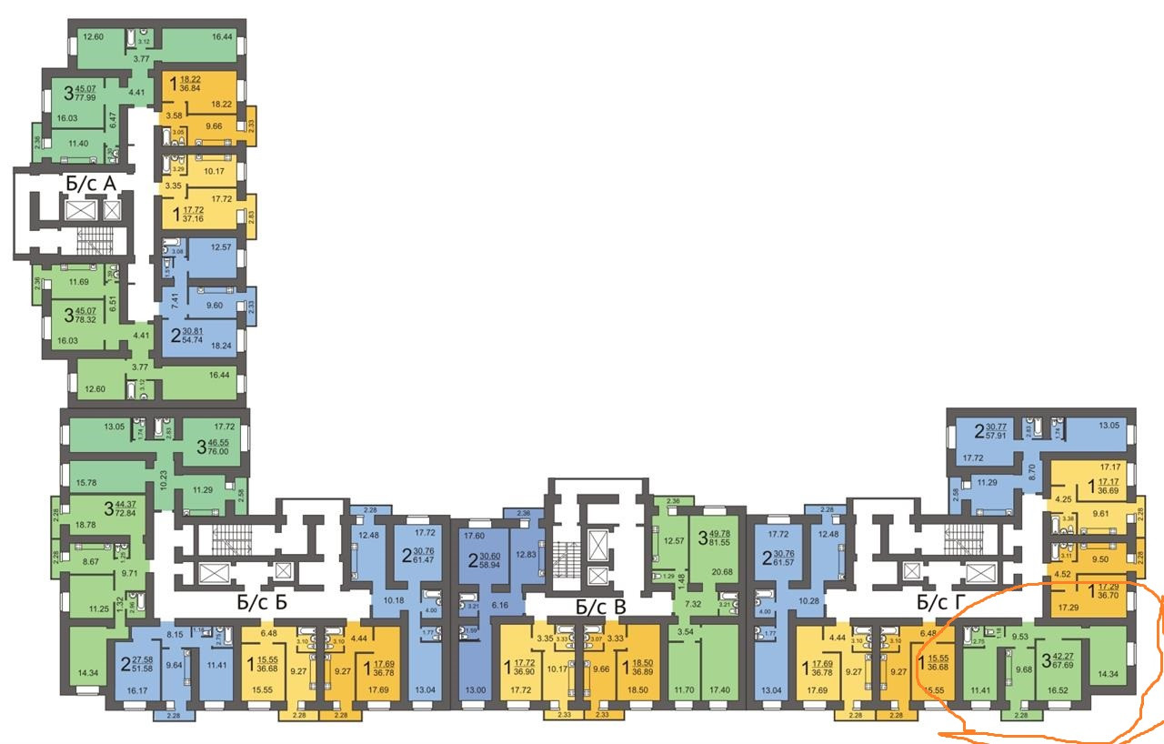 Общая площадь 67.7 м2