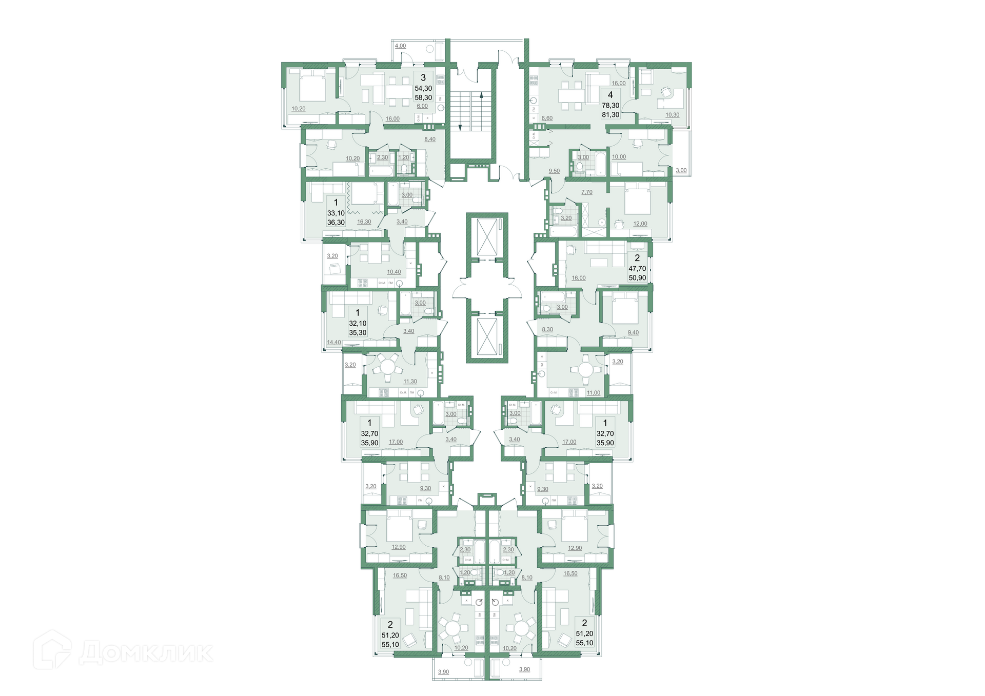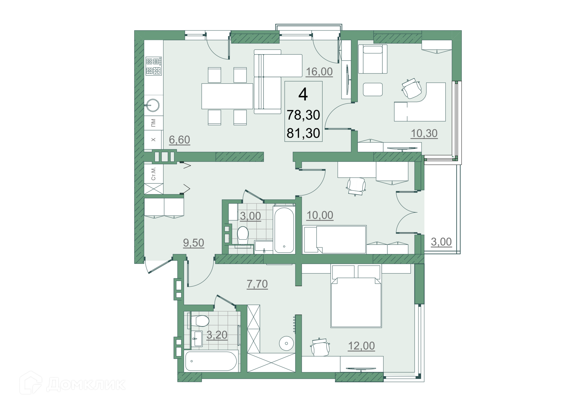 Общая площадь 78.3 м2