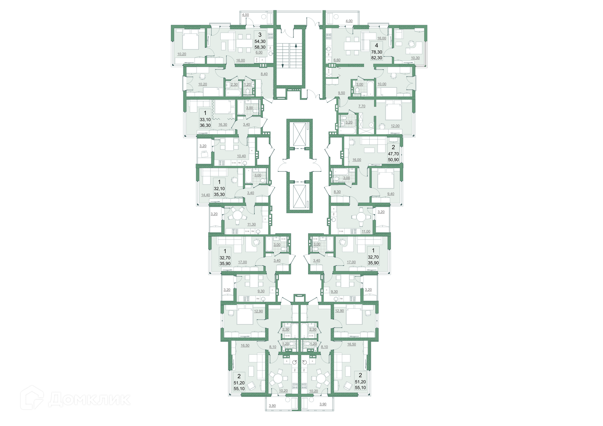 Общая площадь 78.3 м2