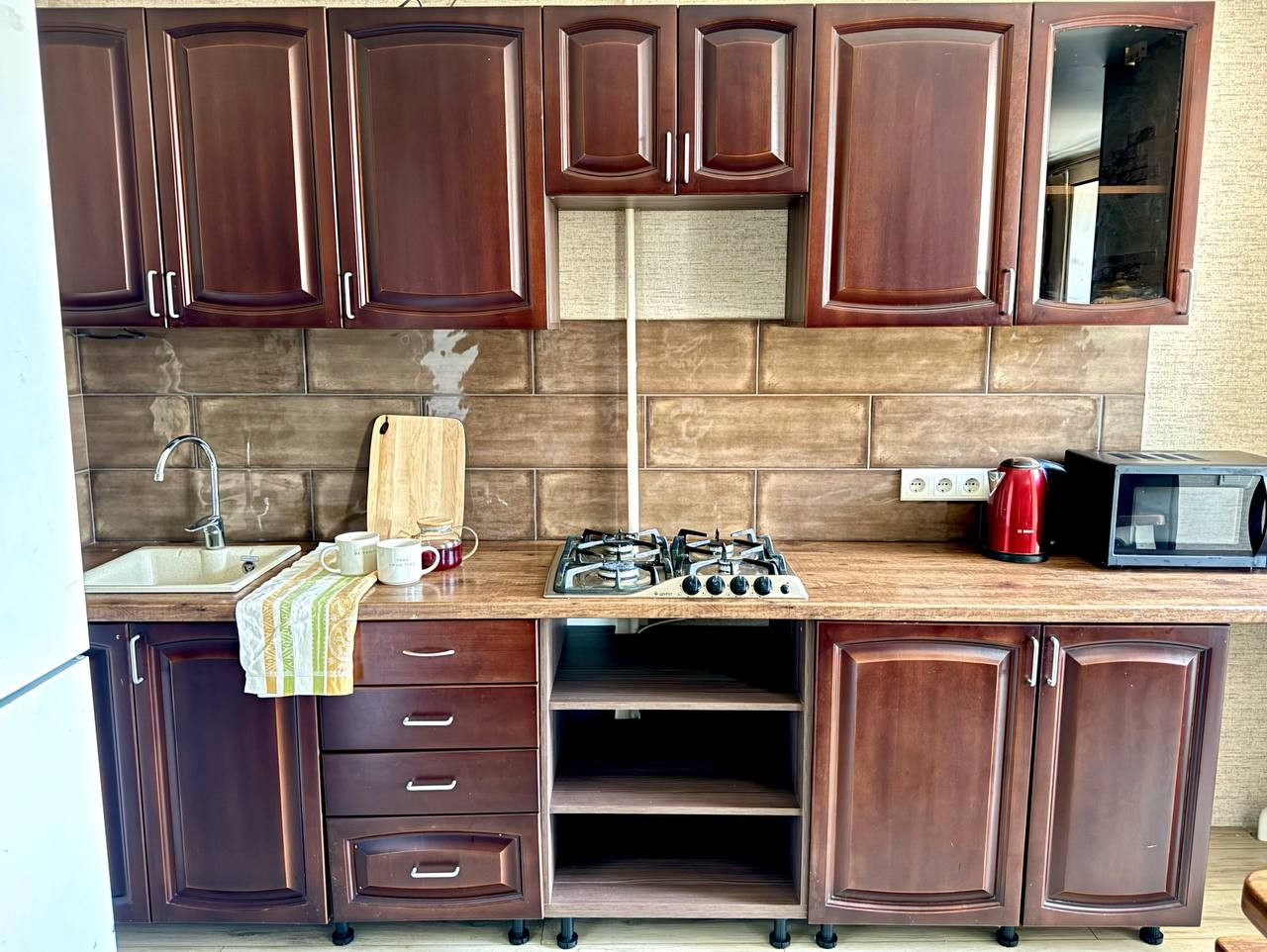 ■ Кухня изготовлена из массива дерева. Дверь в санузел также из дуба. Все соседи адекватные и благополучные.