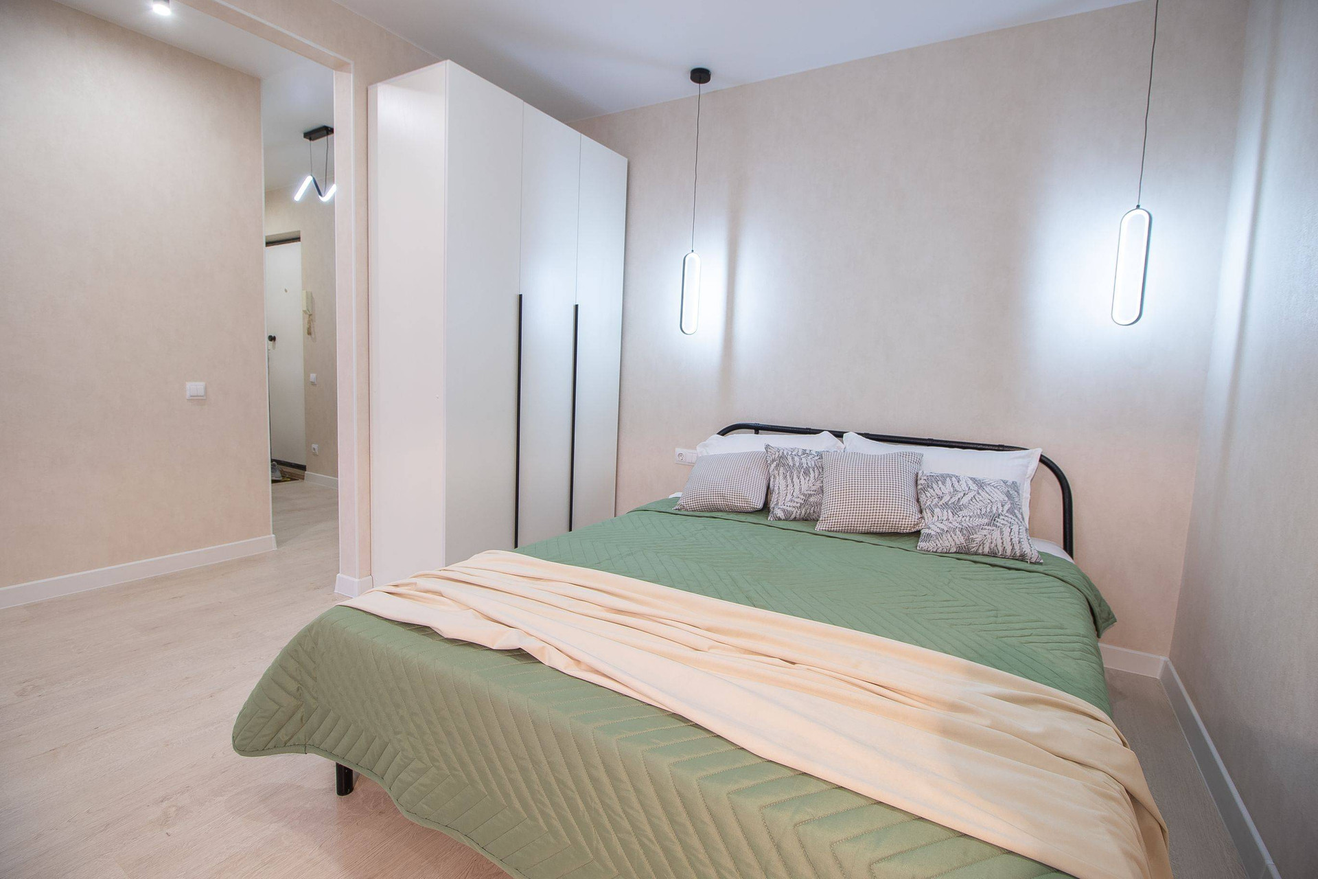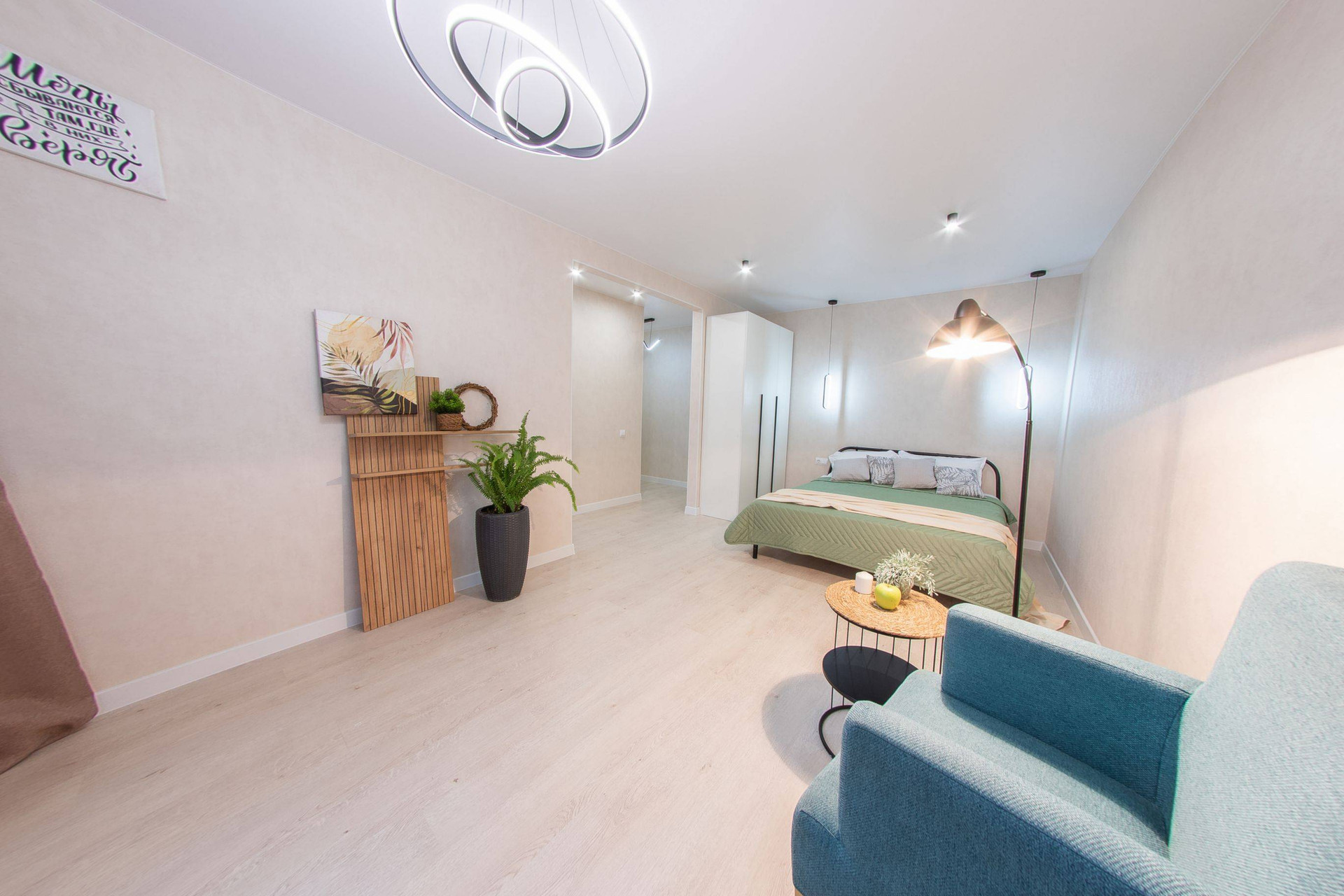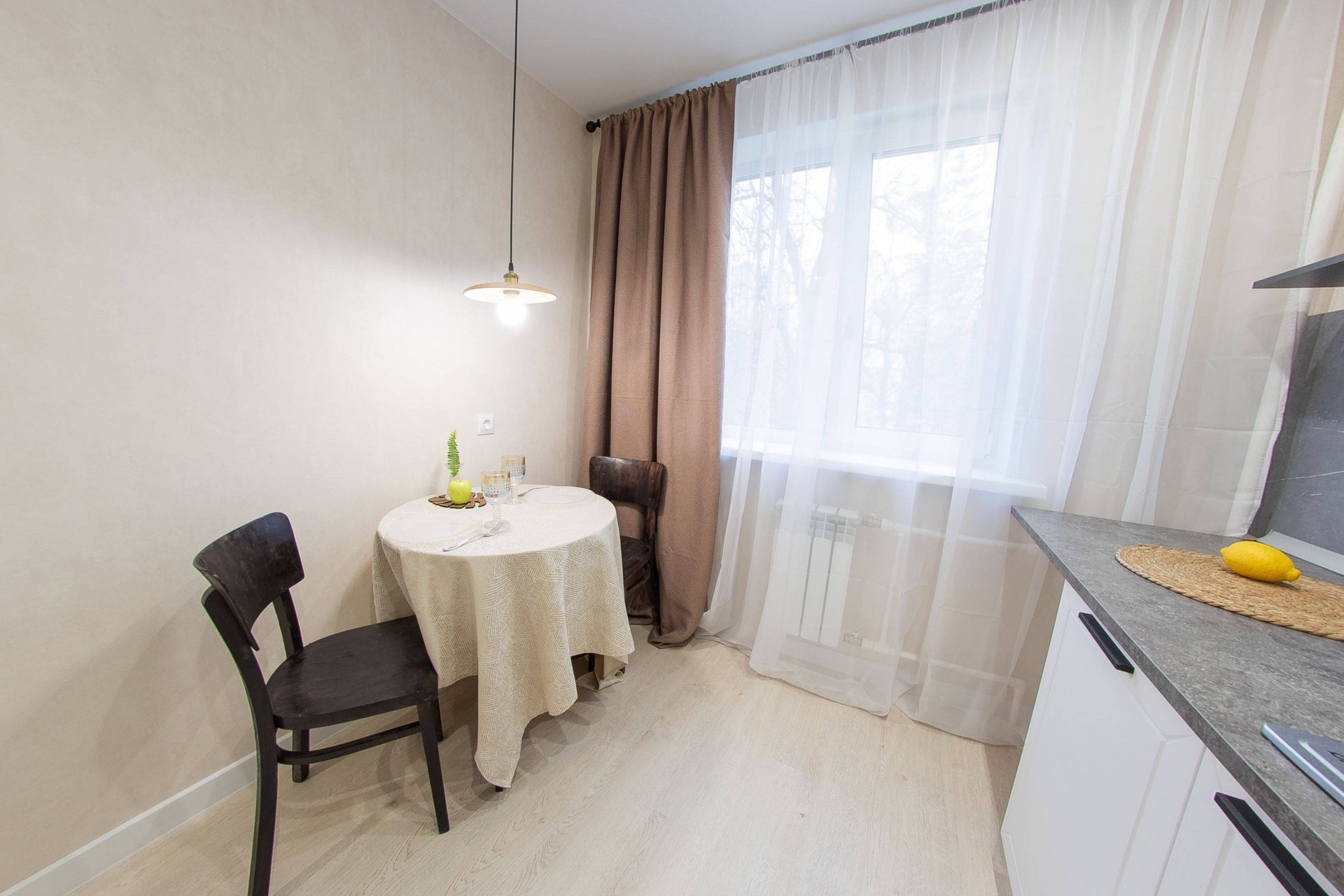 Уютная квартира, полностью готова для Вашей счастливой жизни! Выполнен капитальный ремонт: залиты полы, заменена проводка (медная по   ГОСТу), пластиковые окна, новые радиаторы и сантехника. Использованы качественные отделочные материалы керамогранит и современная плитка в санузле, итальянские обои, ламинат 33 класса, дверь - эмаль, стильные дизайнерские светильники. Квартира укомплектована мебелью (кровать, места хранения, кухня).