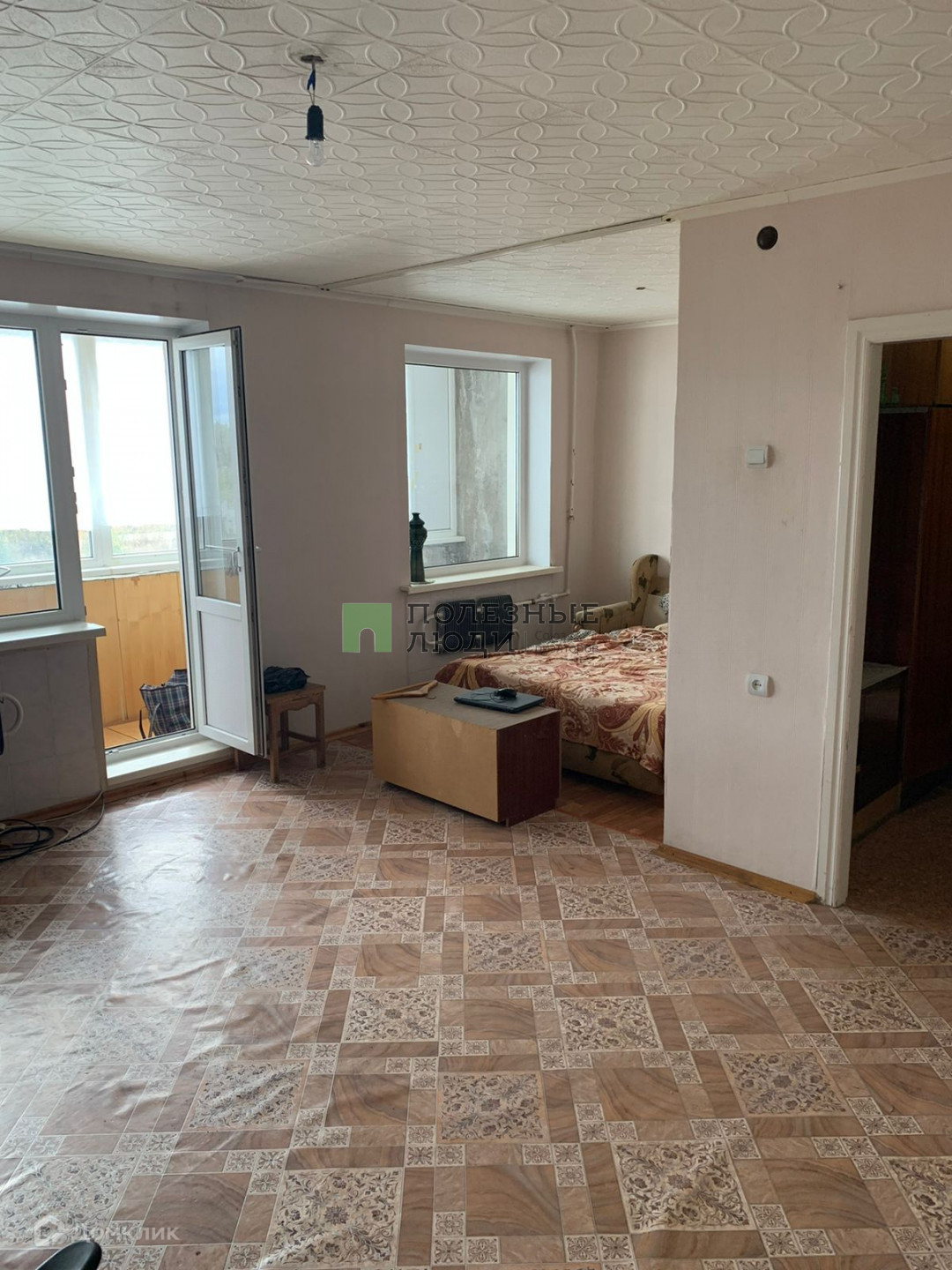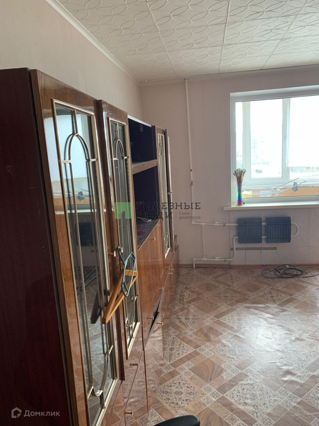 Квартира находится на 4 этаже 5-этажного дома. Большая лоджия застеклена.