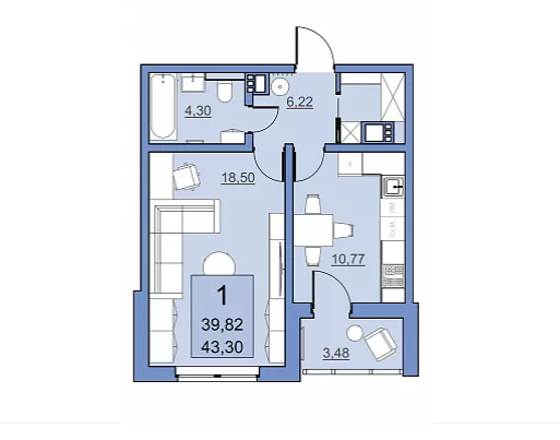 Общая площадь 39.8 м2