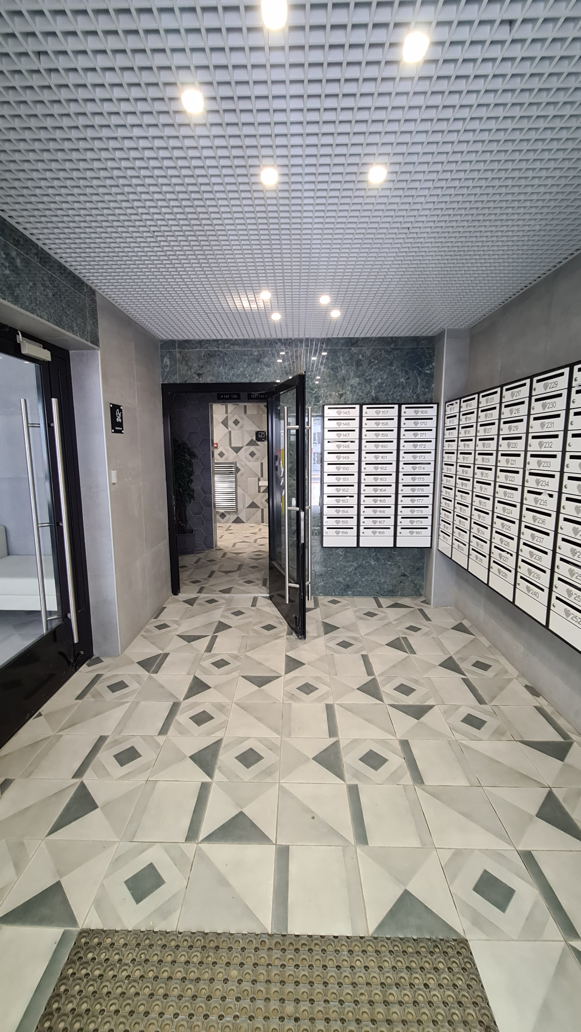 На первых этажах находятся колясочные и велосипедные, а подъезд выполнен по дизайн-проекту.