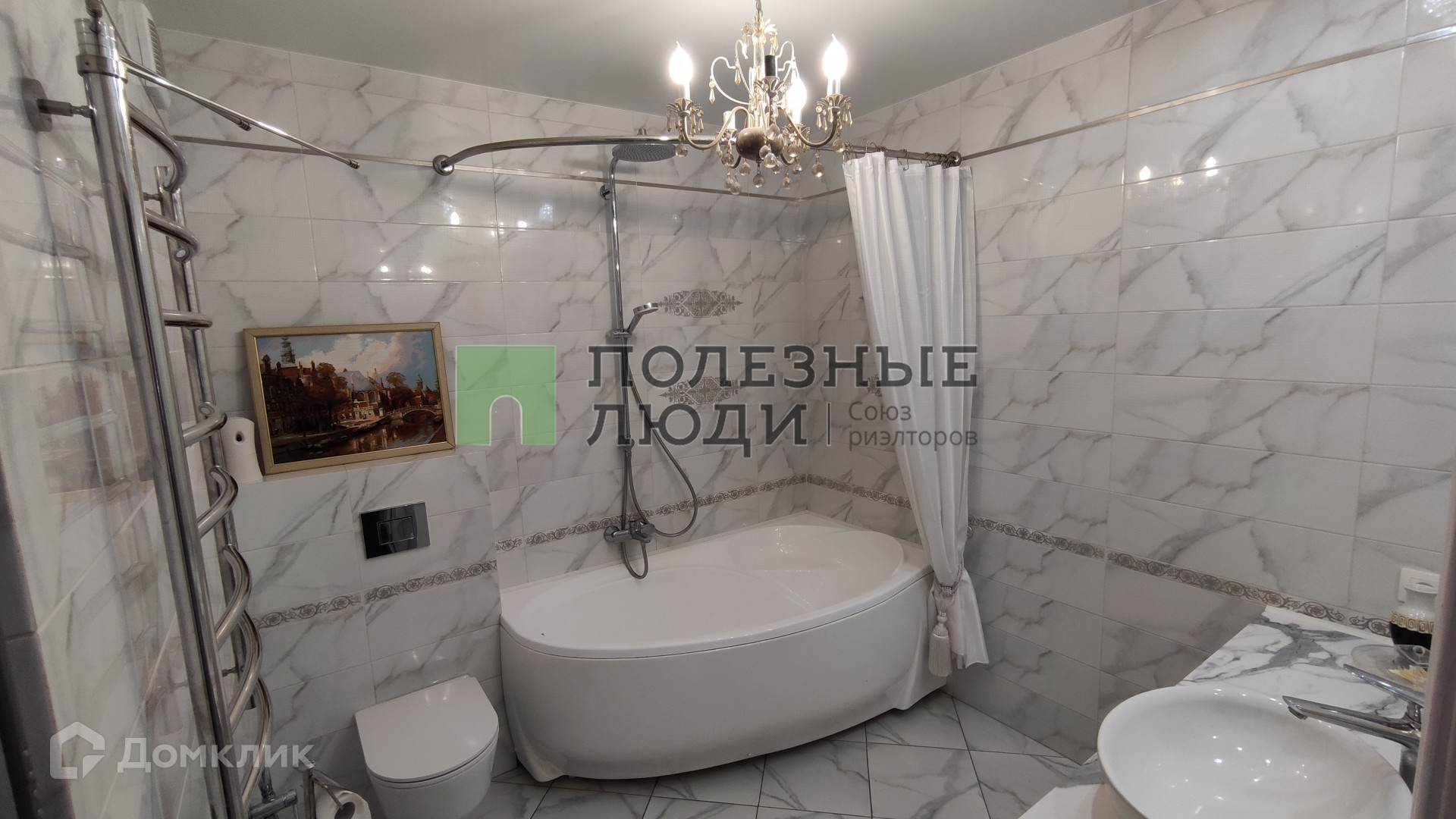 Просторный санузел с дорогой сантехникой.