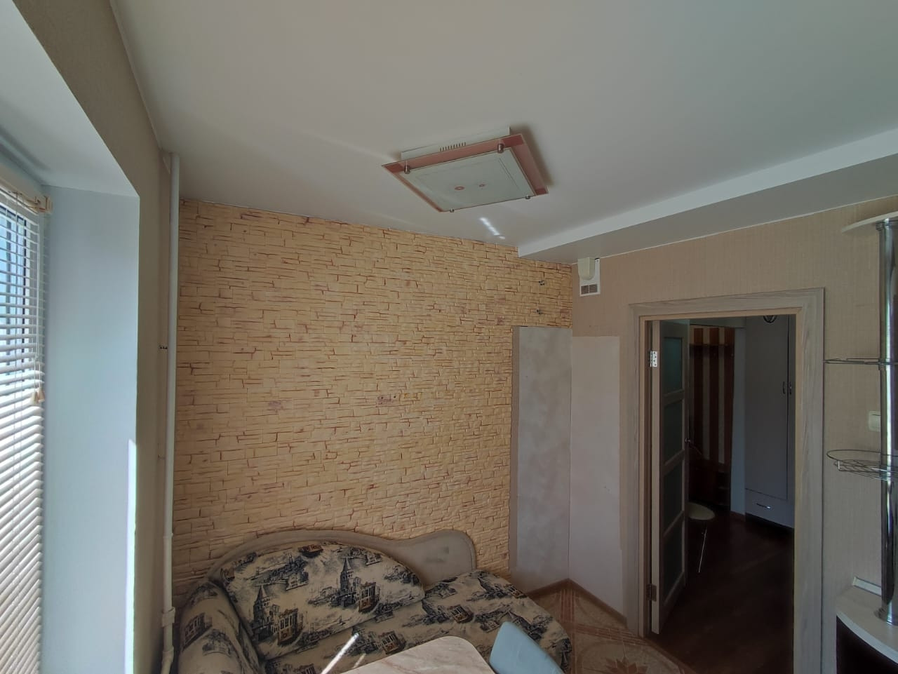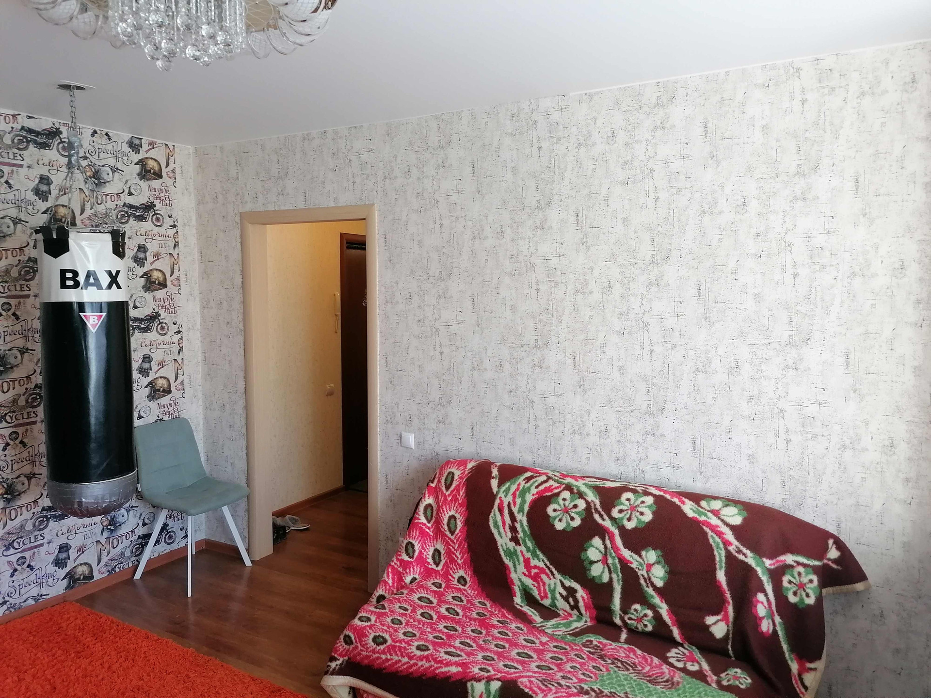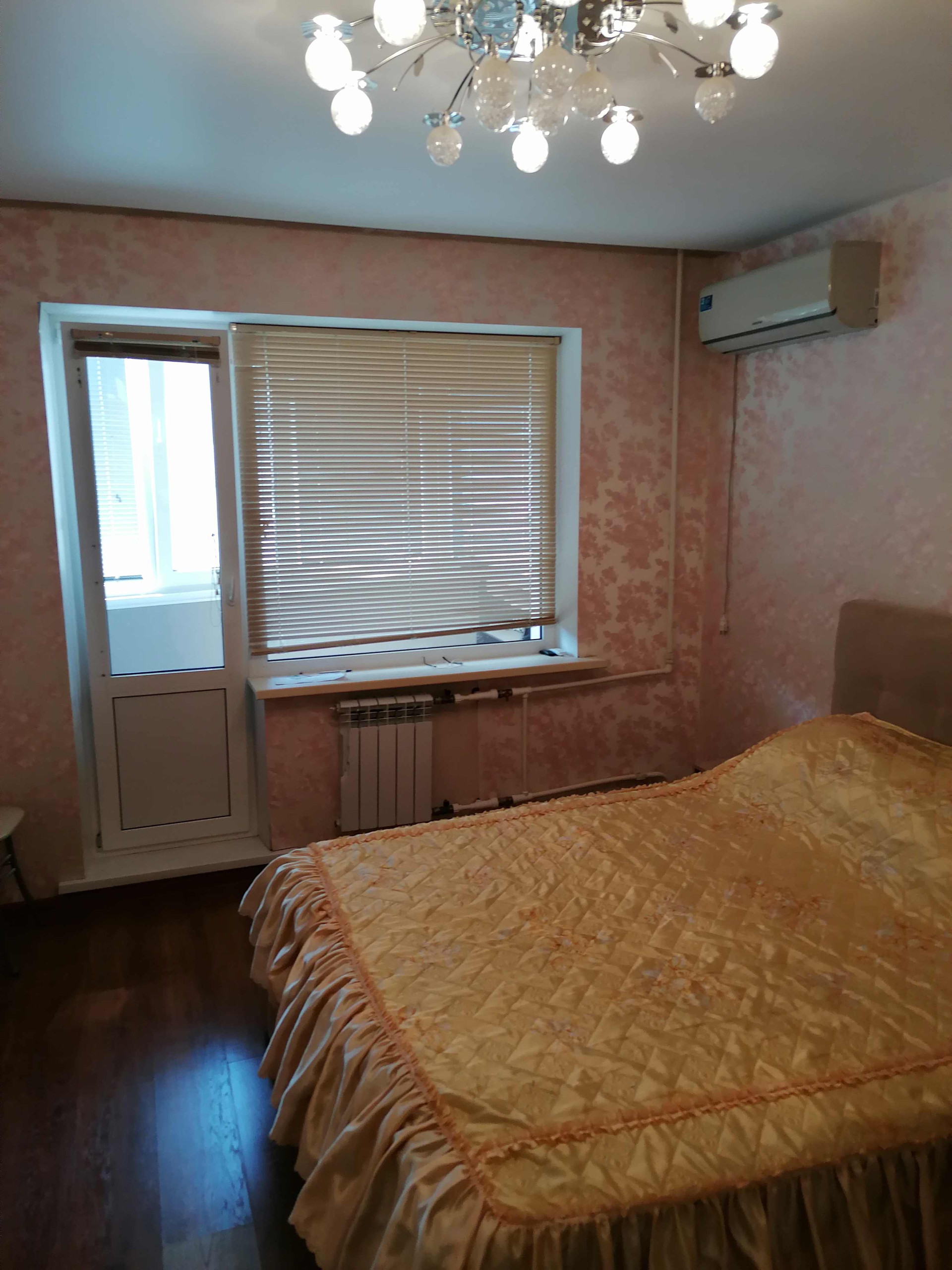 В спальне широкая кровать и вместительный шкаф, а также выход на застекленную лоджию. В коридоре практичный угловой шкаф.