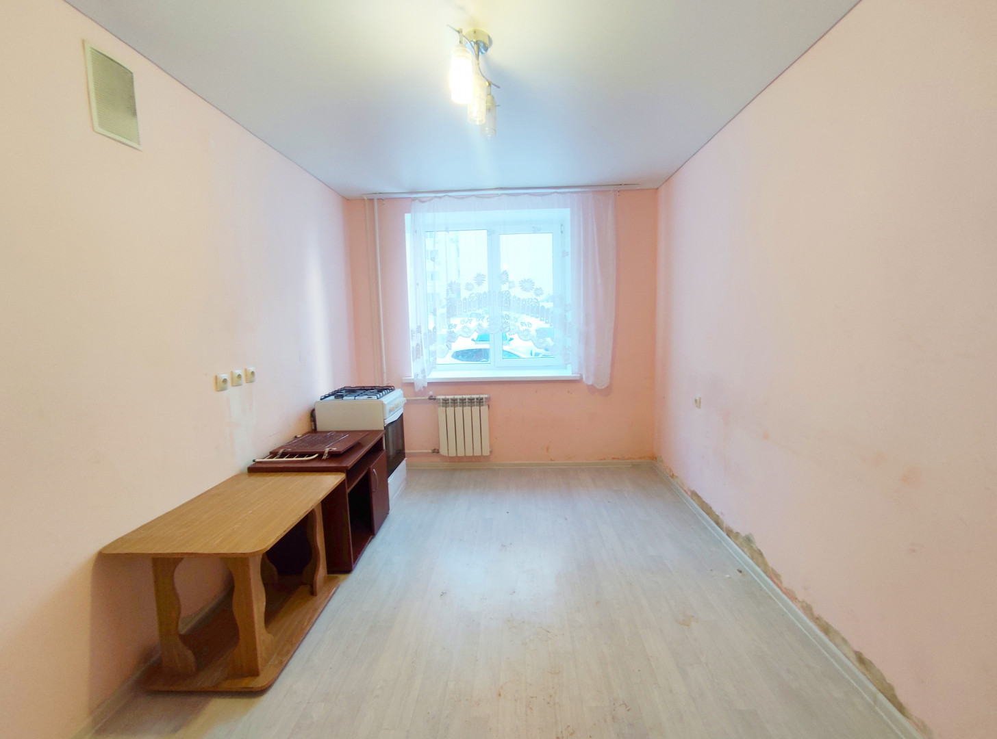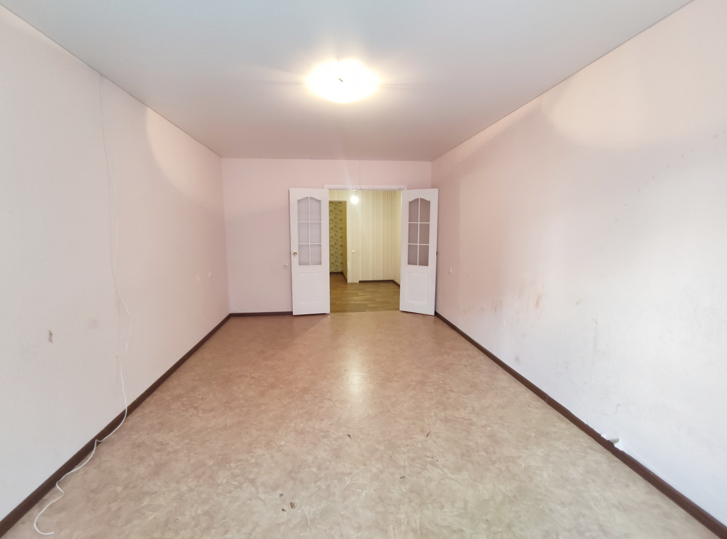 На полу уложен линолеум.