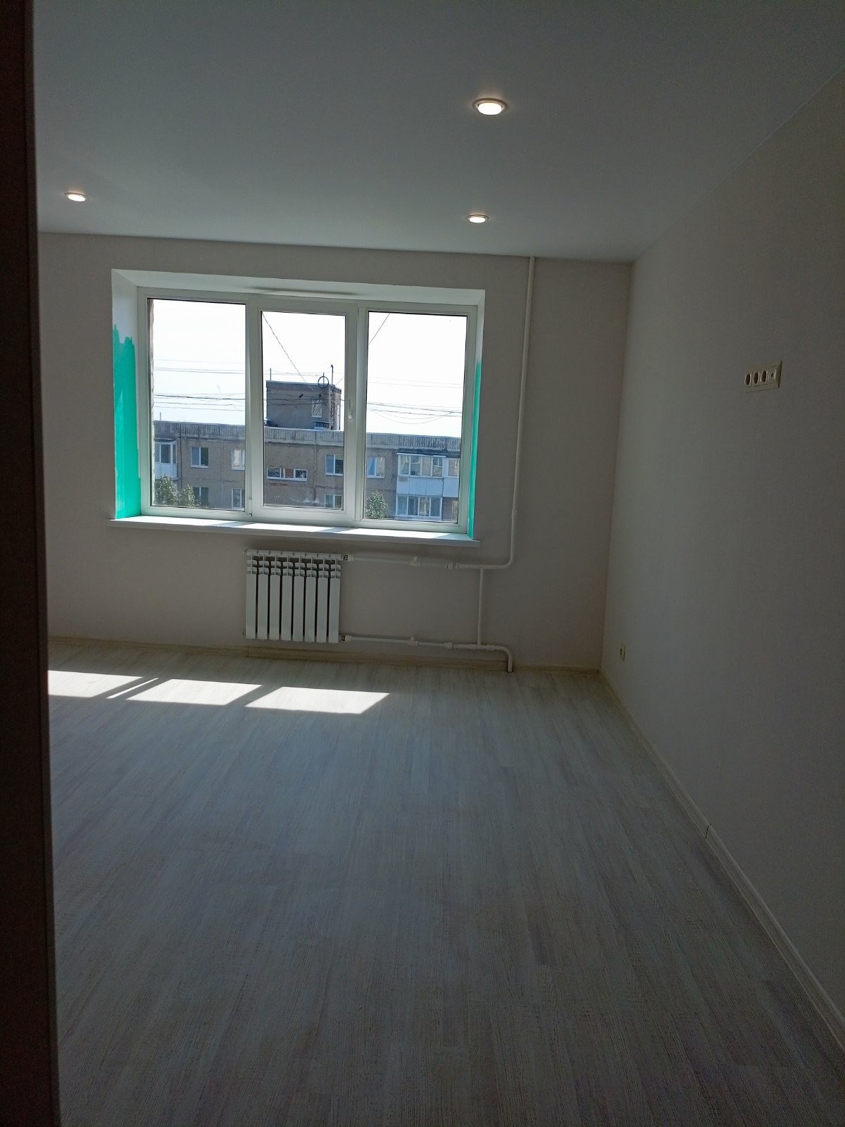 3. Телекоммуникации. Проведены кабели для телевизора в кухню, зал. На полу ламинат 33 класса износостойкости уложен цельным полотном без переходов.