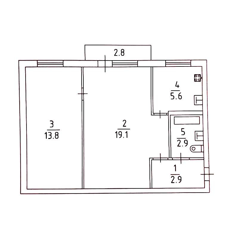 Общая площадь 44.3 м2