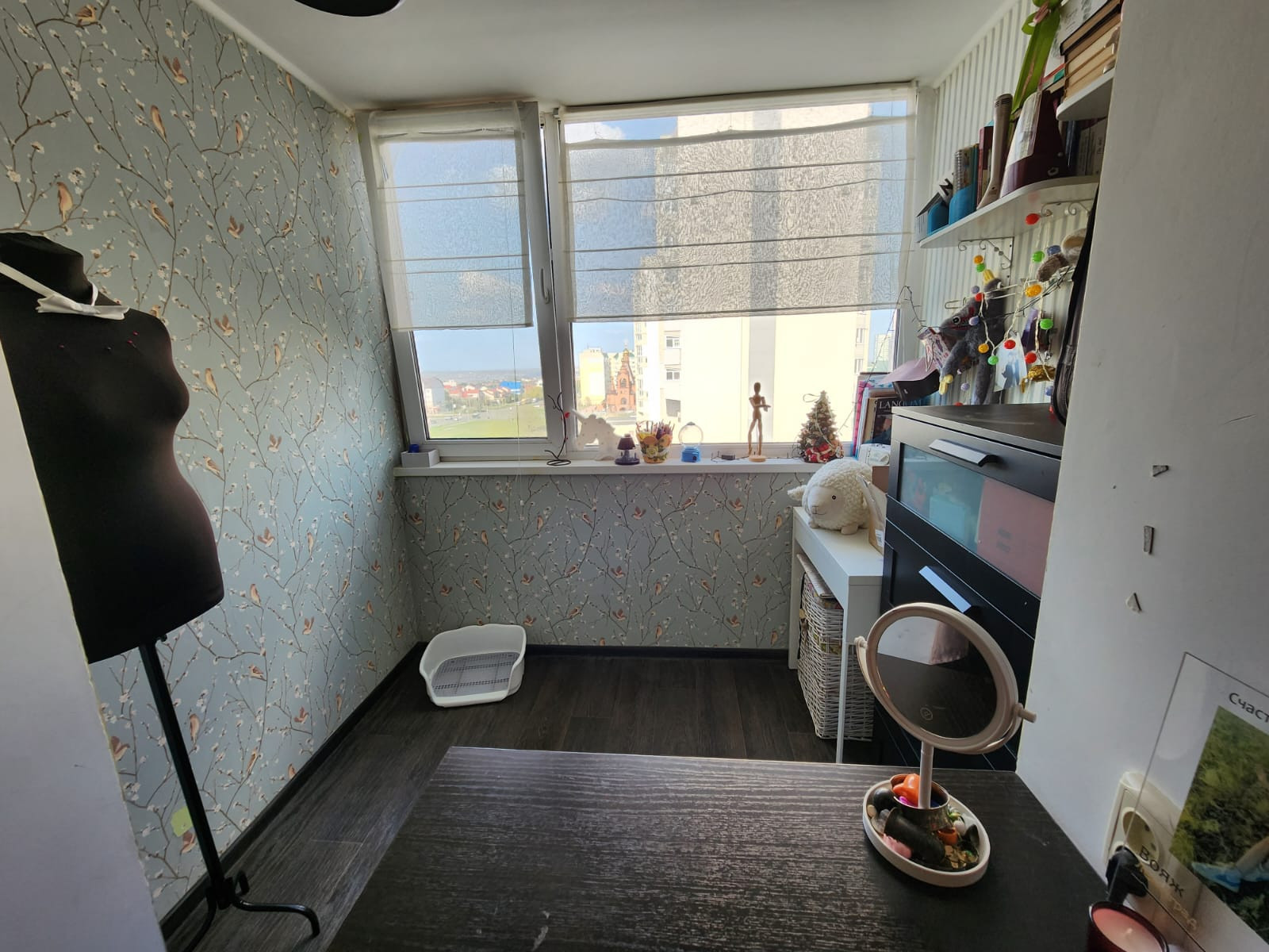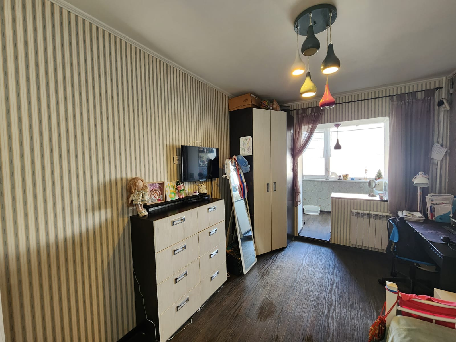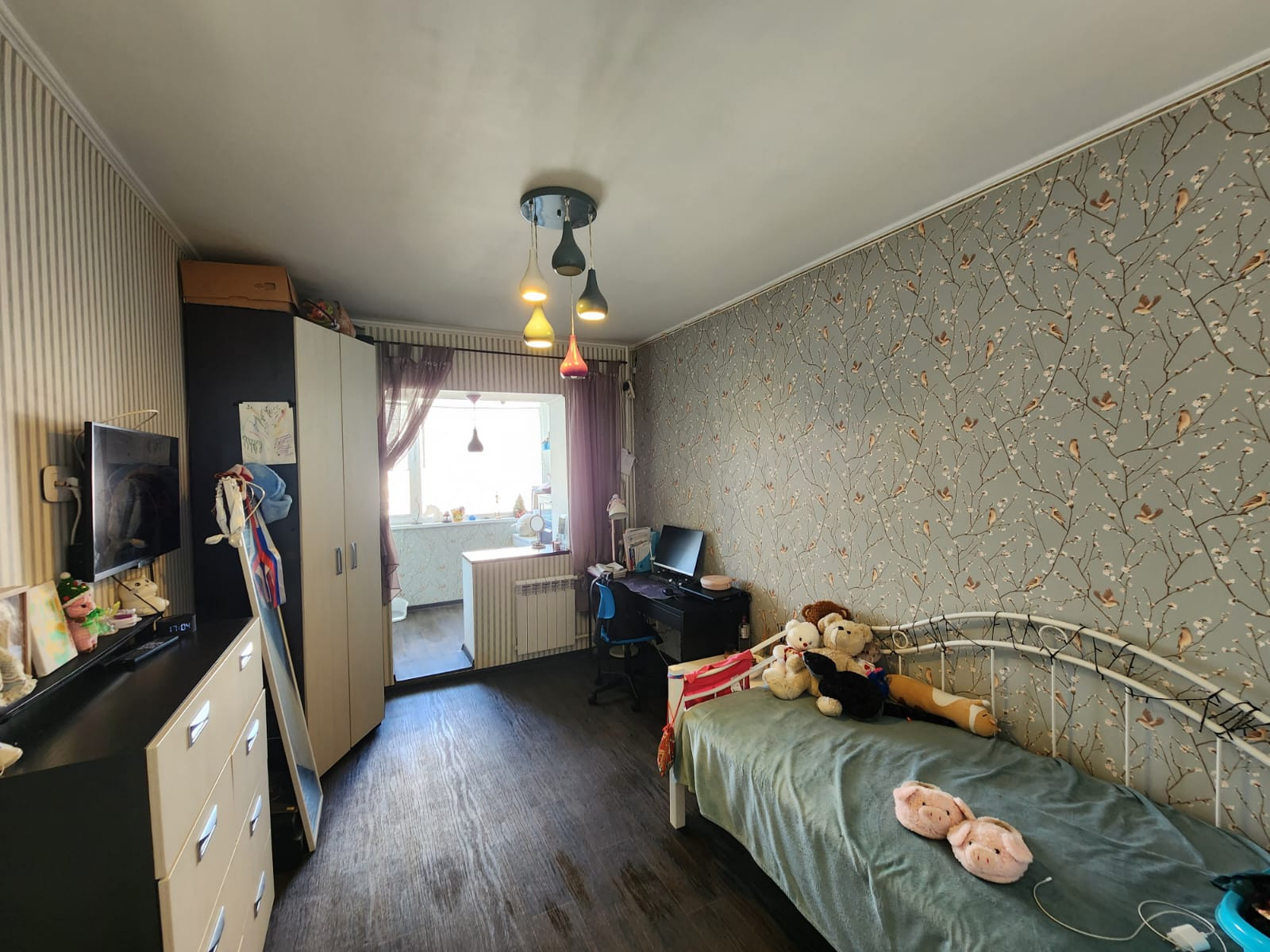 Лоджия остеклена, объединена со спальней.
