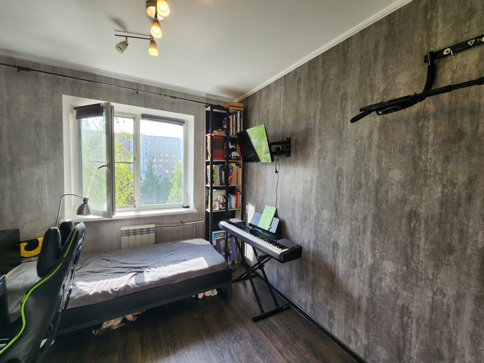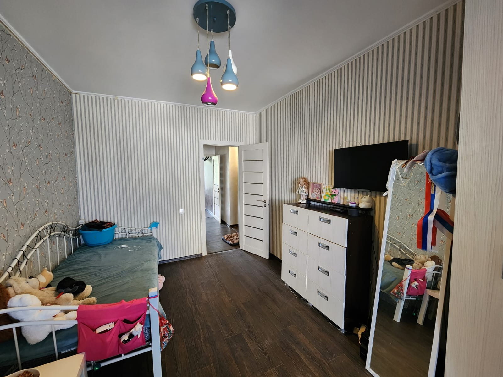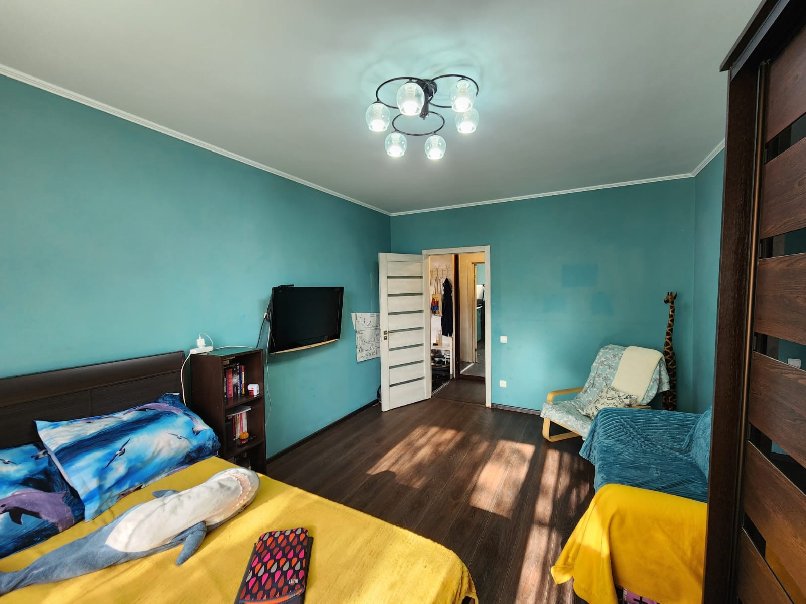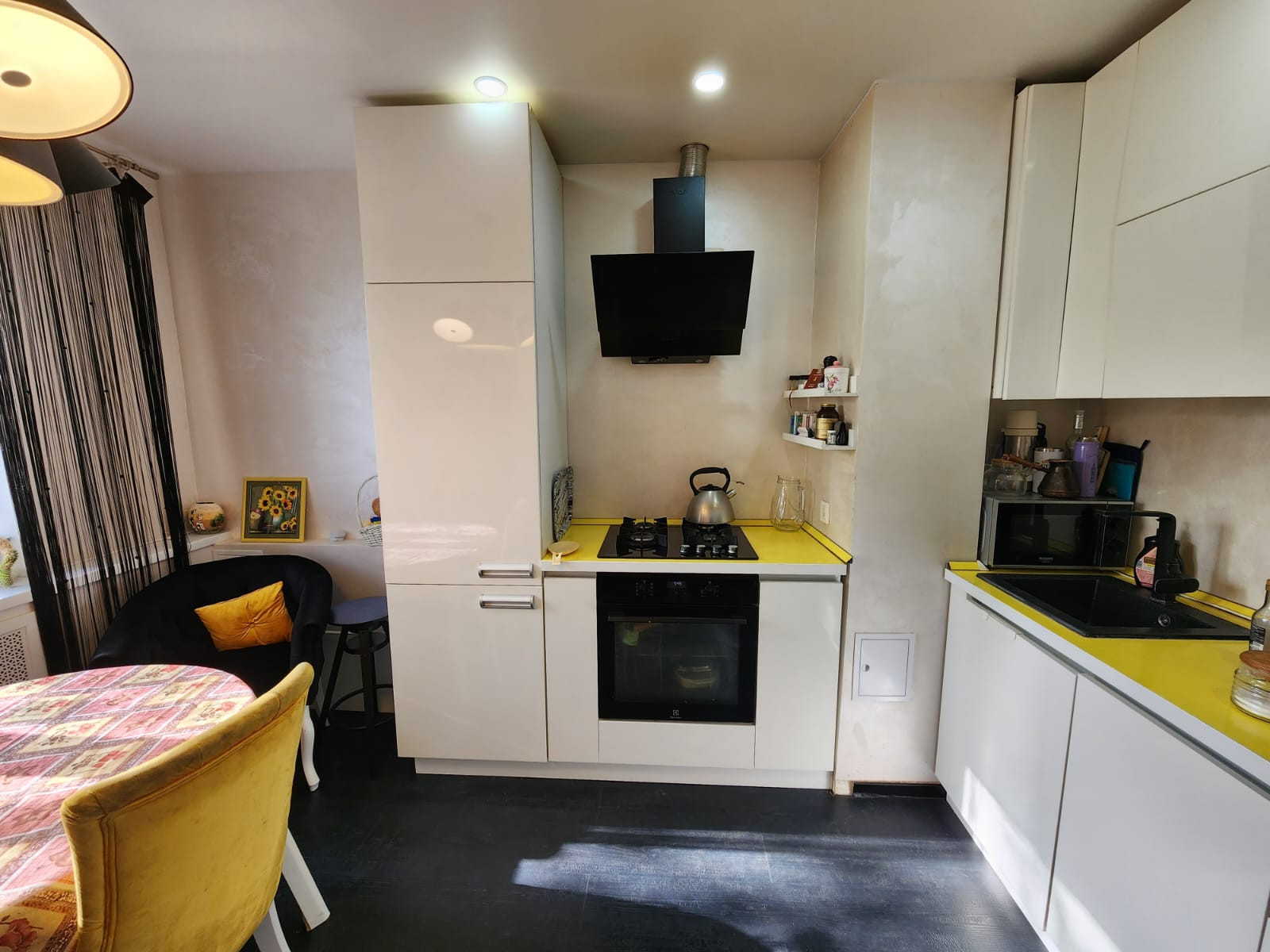 При продаже остается кухня со встроенной техникой, холодильник, шкаф-купе, водонагреватель.