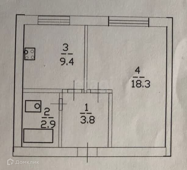 Общая площадь 34.4 м2