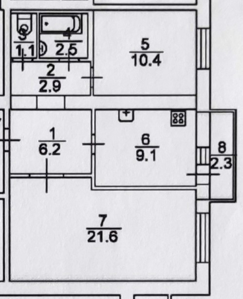 Жилая площадь 41.1 м2